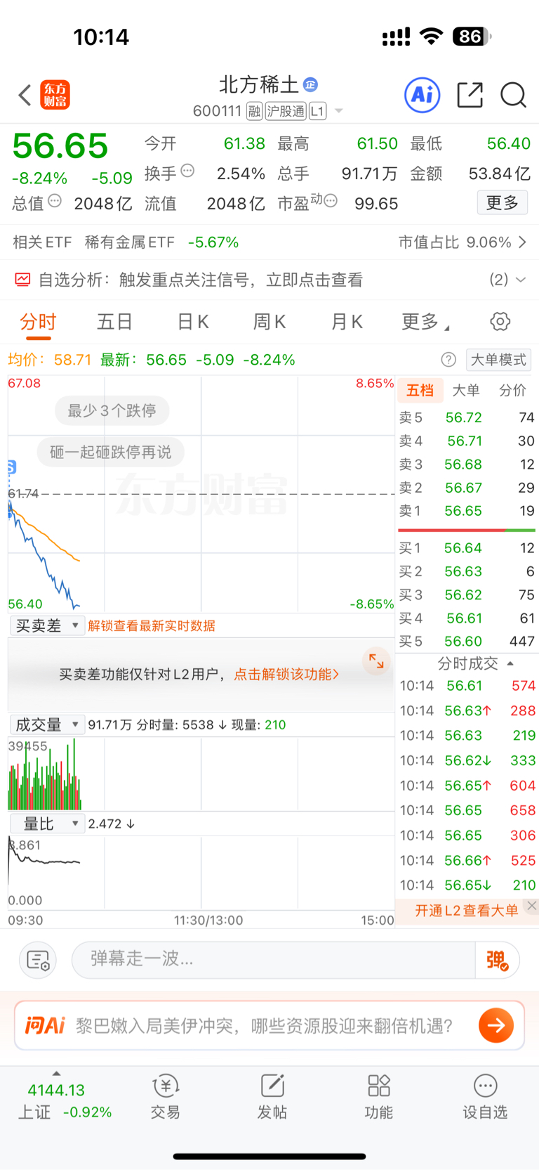 $北方稀土(SH600111)$ 差点就给埋