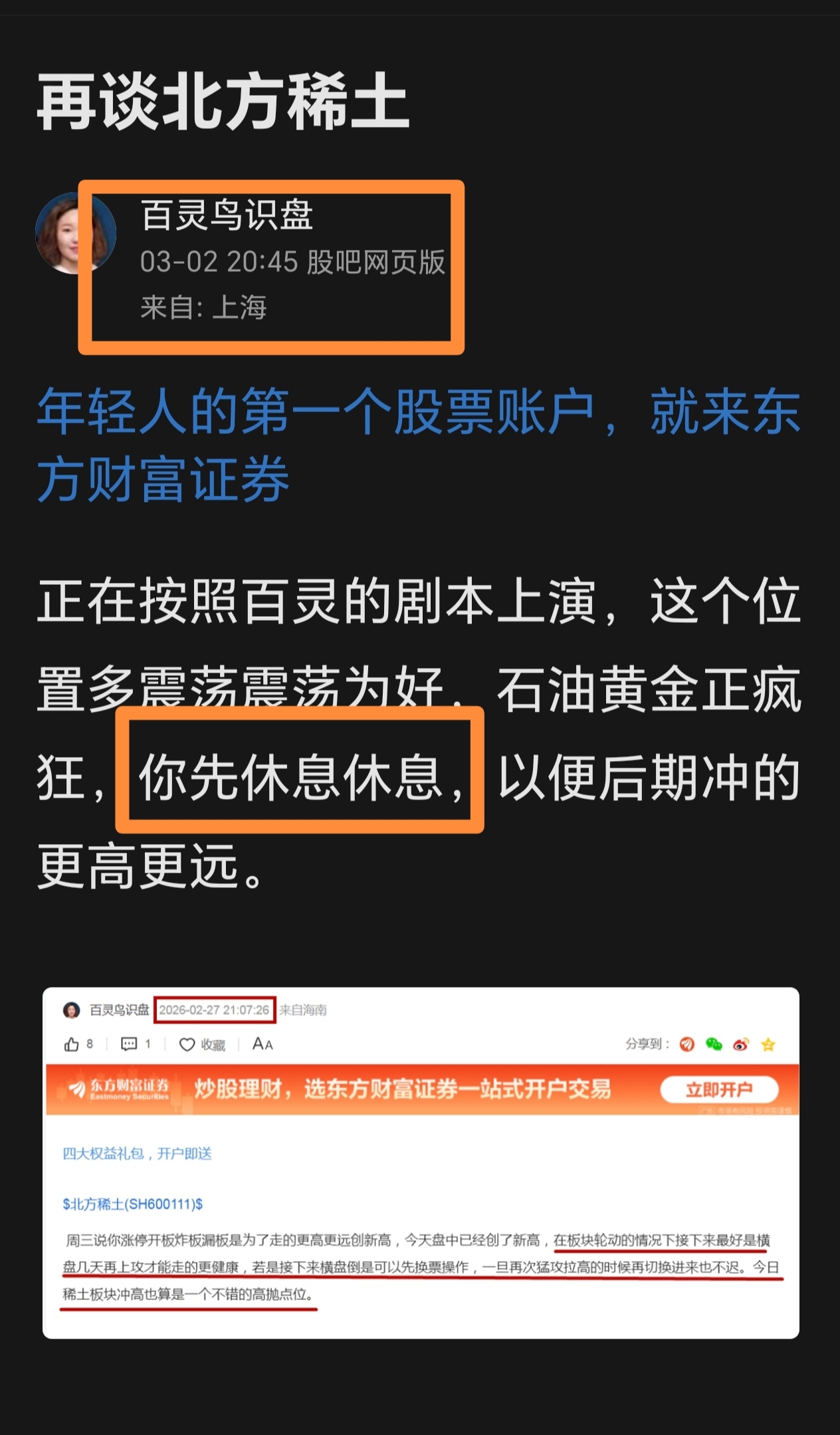温馨提示: 1.根据《证券法》规定,禁止编造、传播虚假信息或者误导性信息,扰乱证券市场;2.用户在本社区发表的所有资料、言论等仅代表个人观点,与本网站立场无关,不对您构成任何投资建议。用户应基于自己的独立判断,自行决定证券投资并承担相应风险。《东方财富社区管理规定》