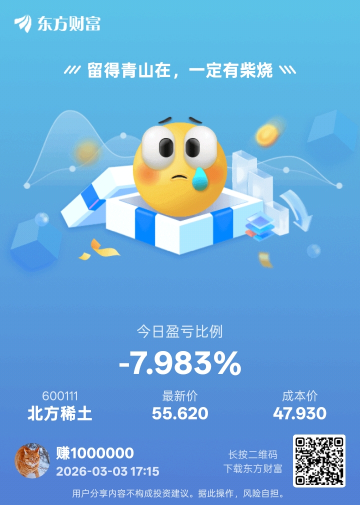 温馨提示: 1.根据《证券法》规定,禁止编造、传播虚假信息或者误导性信息,扰乱证券市场;2.用户在本社区发表的所有资料、言论等仅代表个人观点,与本网站立场无关,不对您构成任何投资建议。用户应基于自己的独立判断,自行决定证券投资并承担相应风险。《东方财富社区管理规定》
