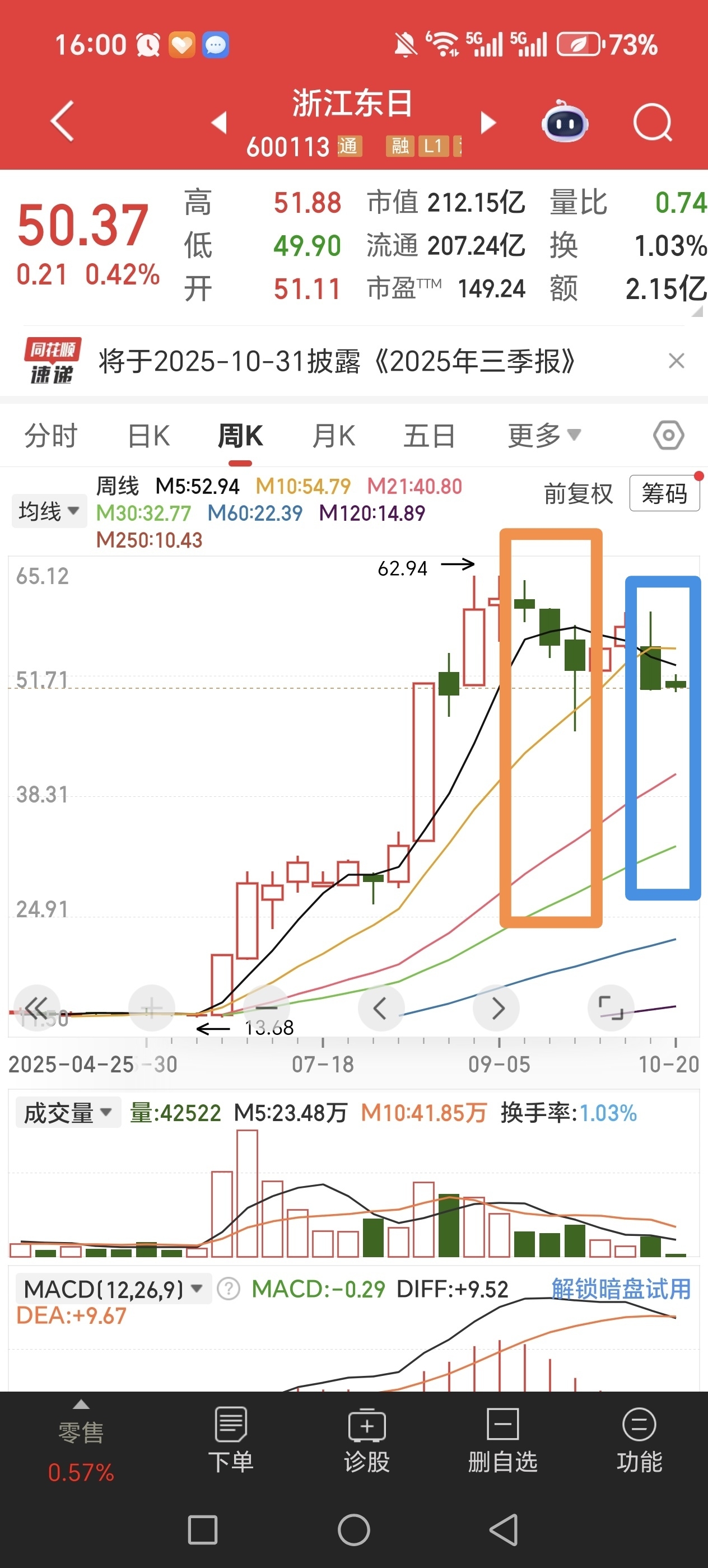 $浙江东日(SH600113)$ 10周k马上拐头向下~~还固执己见,……??