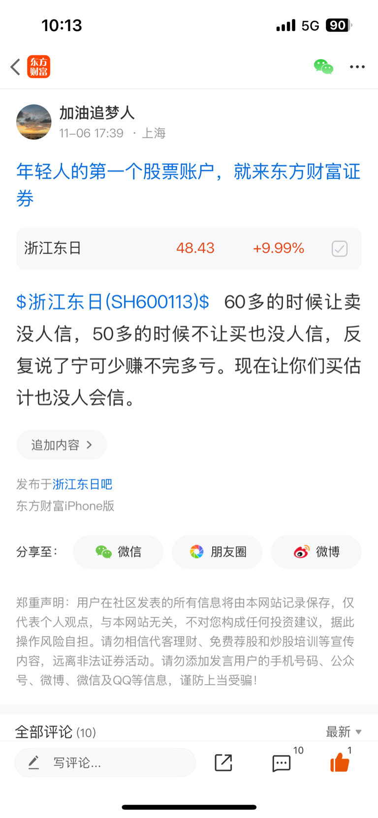 温馨提示: 1.根据《证券法》规定,禁止编造、传播虚假信息或者误导性信息,扰乱证券市场;2.用户在本社区发表的所有资料、言论等仅代表个人观点,与本网站立场无关,不对您构成任何投资建议。用户应基于自己的独立判断,自行决定证券投资并承担相应风险。《东方财富社区管理规定》