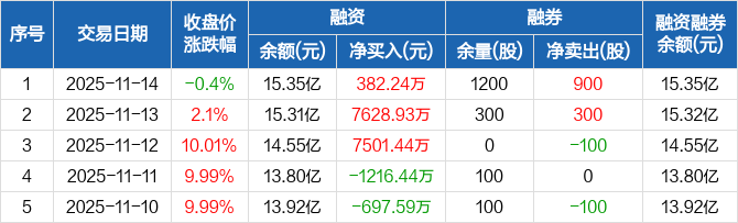 浙江东日:融资余额15.35亿元,创历史新高(11-14)