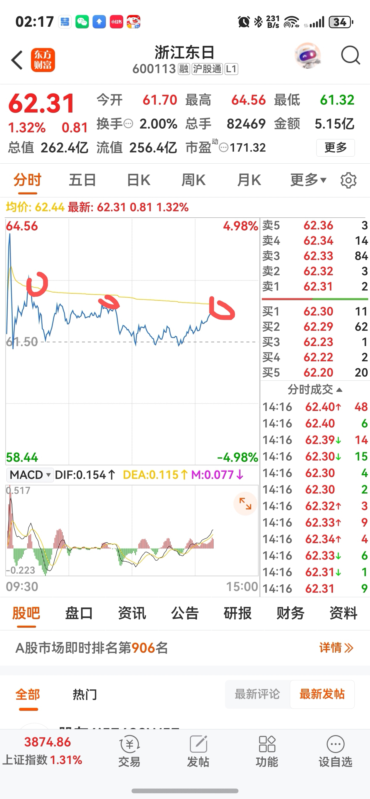 $浙江东日(SH600113)$ 62.44上不去