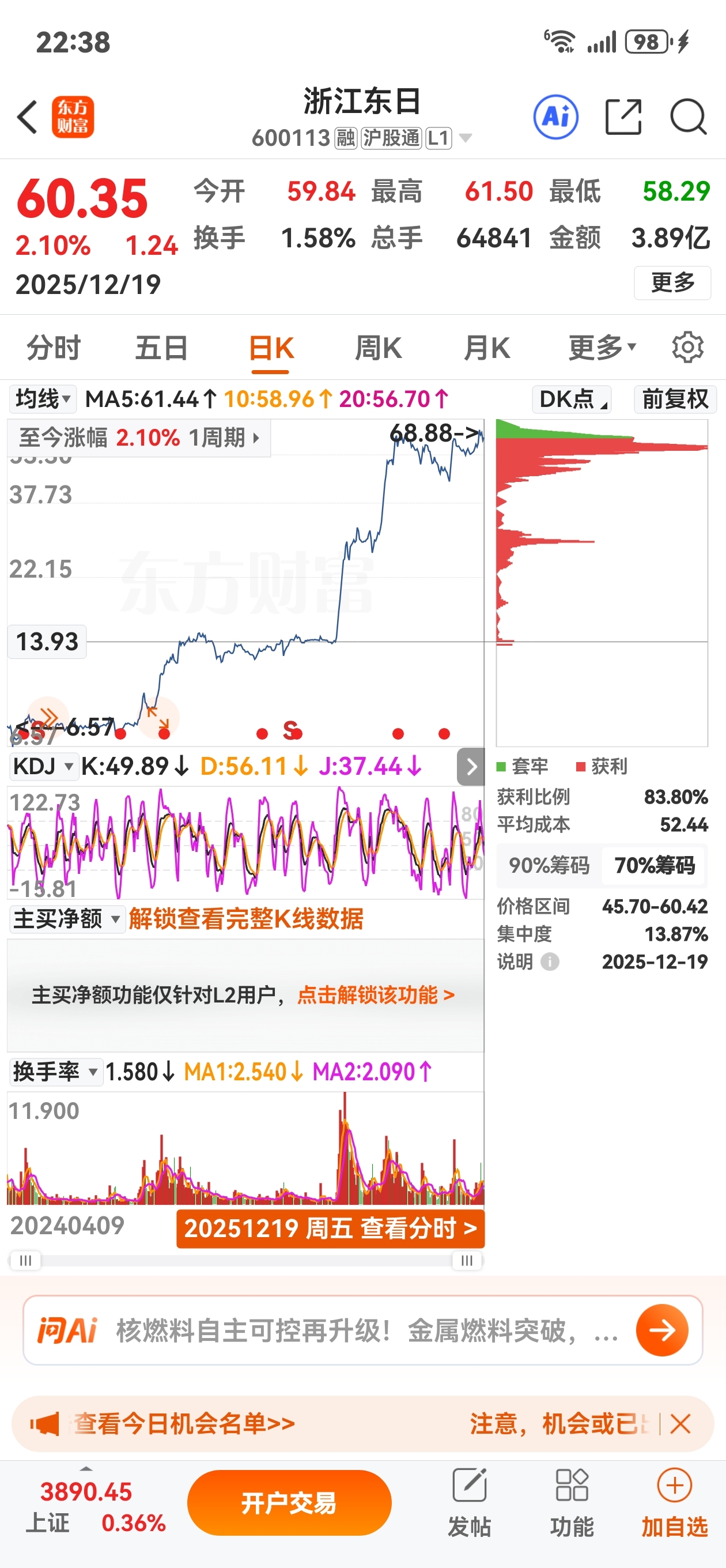$浙江东日(SH600113)$ 底部13块多筹码还有部分,这说明了,什么哪位大佬指点下