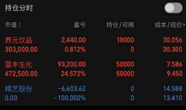 养元饮品:早评文章讲过:“形态上,三板成妖,强者恒强,今日重点观察大于5.5%的高开冲高回撤再创新高或高开回撤创新高模型,不满足不加入。”今天分时,大于5.5%的高开,回撤后,快速创新高,满足预期,按计划上。