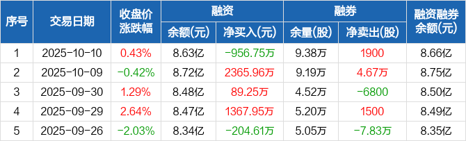 东睦股份:融资净偿还956.75万元,融资余额8.63亿元(10-10)