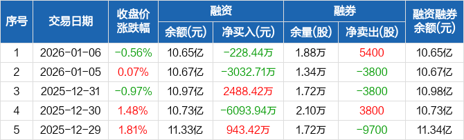 东睦股份:融资净偿还228.44万元,融资余额10.65亿元(01-06)