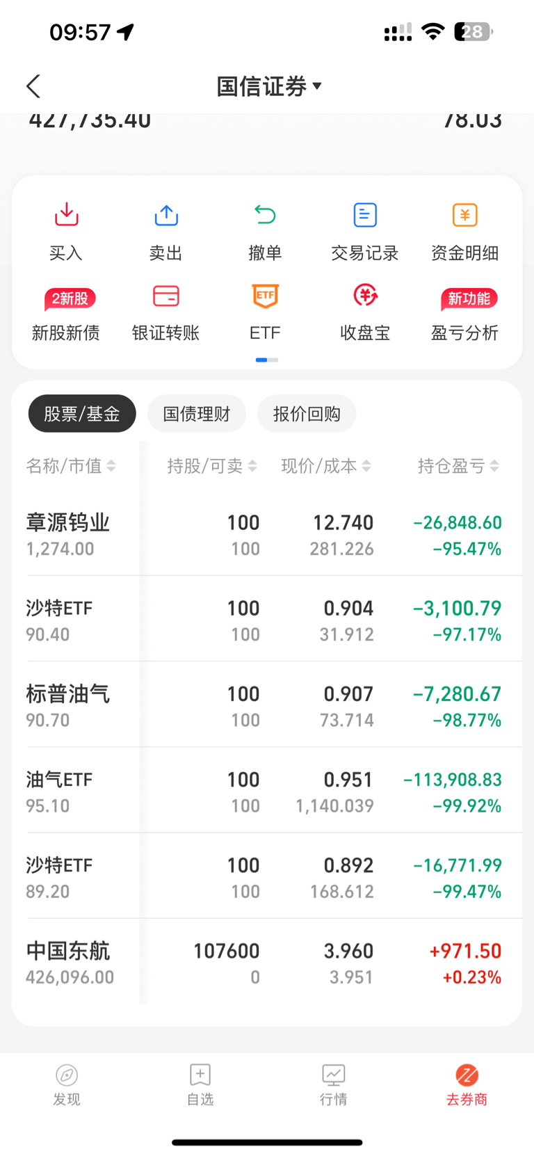 $中国东航(SH600115)$ 2024年9月30号入市,截止今天60万亏的还剩下43,建工爷叔被套10年都回本了,今天我把所有股全部清仓留1手底仓以作警示,43万全仓杀入中国东航,因为我坚信他不会退市,总有一天会涨到6元,我还年轻才30出头,哪怕10年20年50年,到我80岁的时候,我总有解套的一天,解套后注销账户再也不碰。