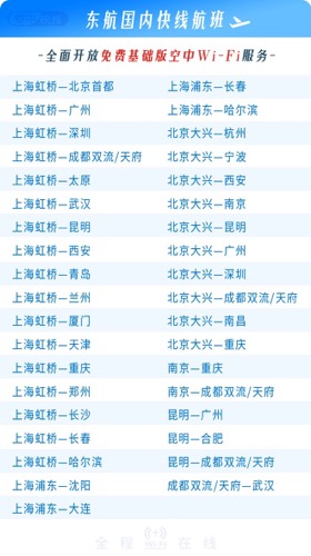 东方航空所有宽体机国内航班将提供经济舱全舱位免费Wi-Fi