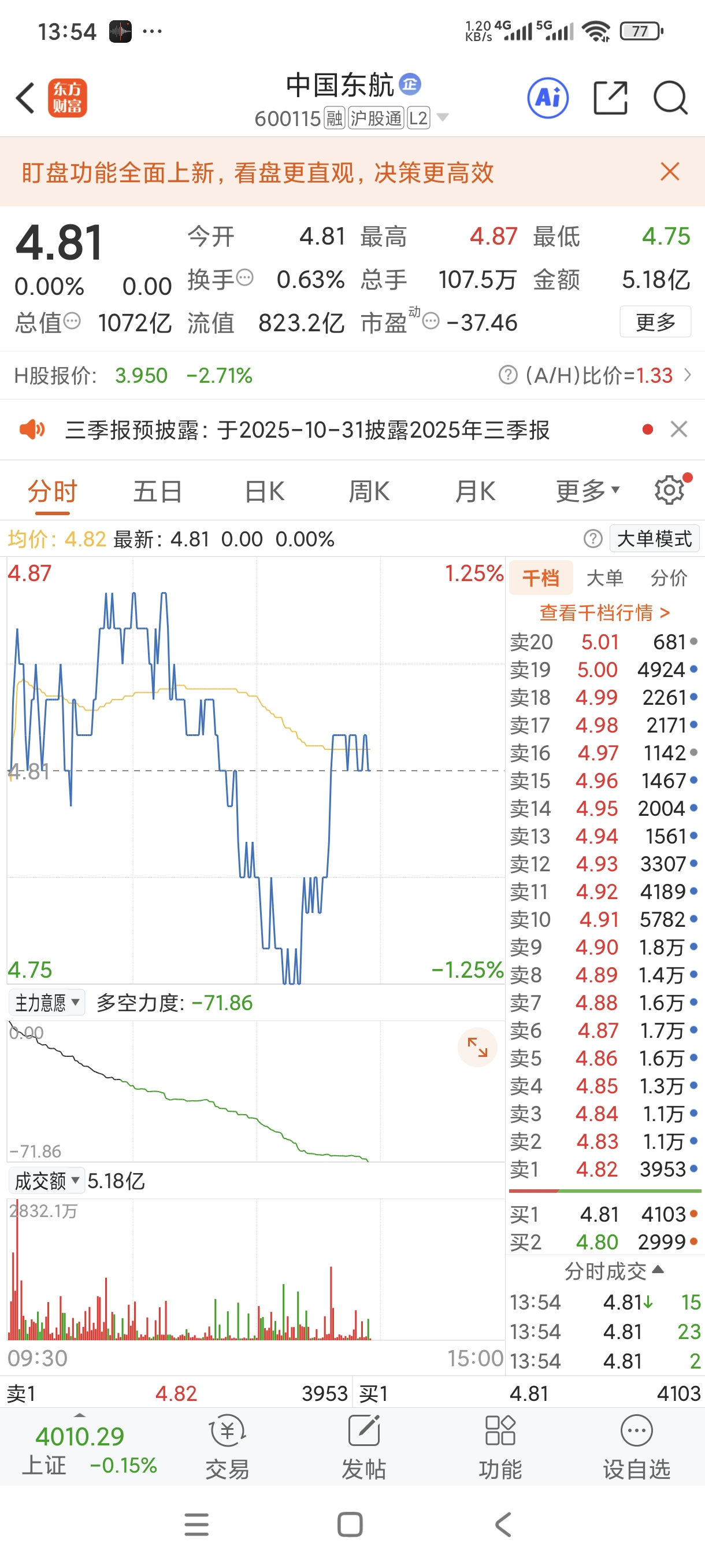 $中国东航(SH600115)$ 最好的状态是2:30以后,收盘价4.86以上