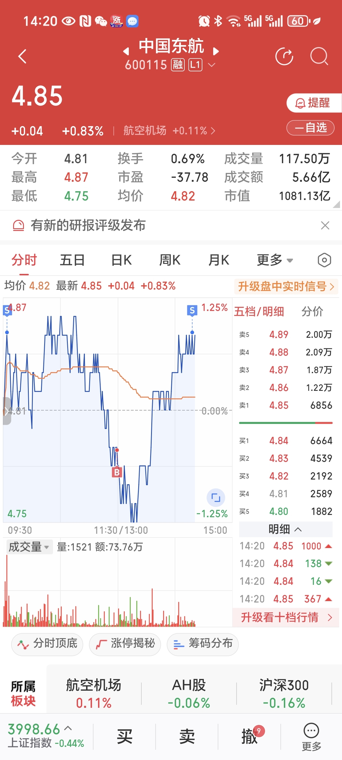 $中国东航(SH600115)$ 今天卖飞一部分,明天之后如大涨继续卖,感觉也就最后冲刺一波了