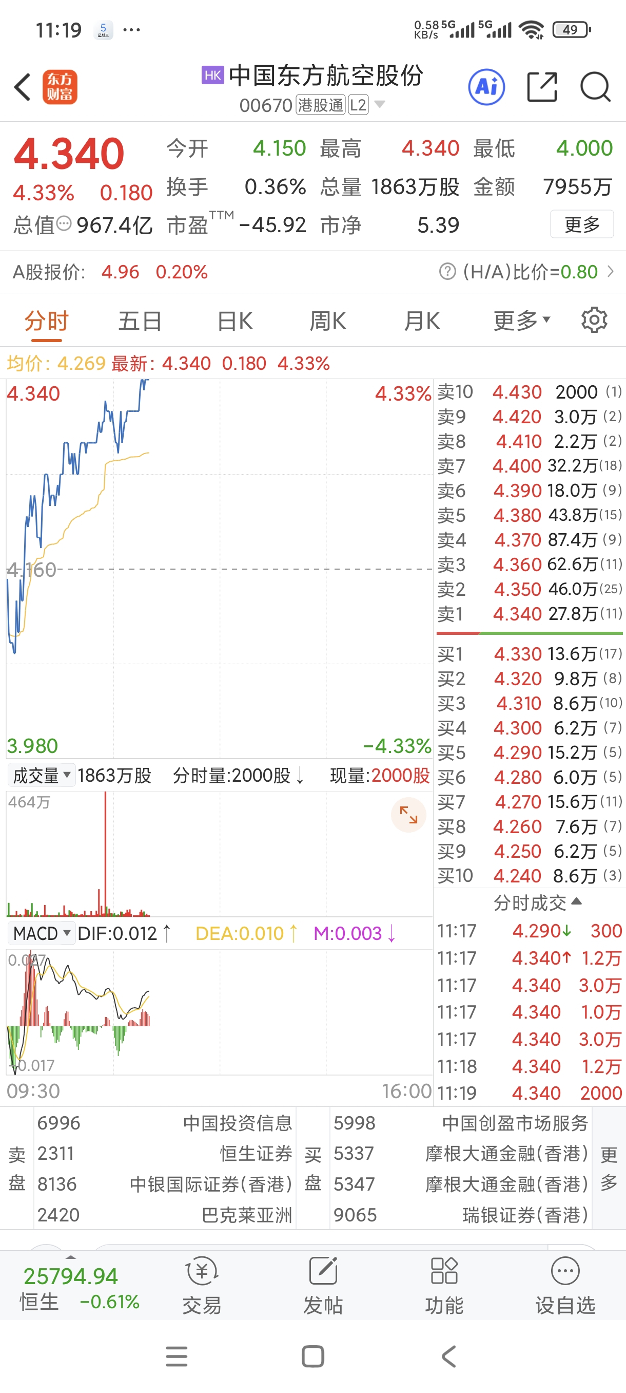 $中国东航(SH600115)$ 港股马上涨到5块了,你至少要6块以上吧#炒股日记# #复盘记录# #强势机会# #实盘记录# #股市怎么看#