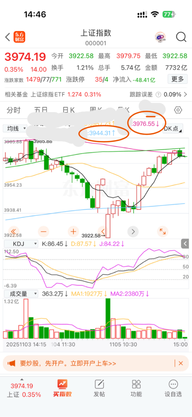 $中国东航(SH600115)$ 更新下数据,上证幅度3976至3944,中间振幅缩小至32个点子了,预计等收窄至20个点子时指数会选择方向,11月我看冲击4100,东航冲6.20。这只是我的个人观点大家只当玩笑看看,毕竟纯技术狗都不看的