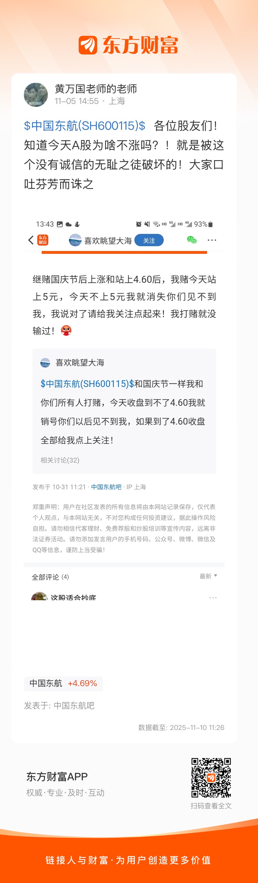 $中国东航(SH600115)$  各位股友们!知道今天A股为啥不涨吗?!就是被这个没有诚信的无耻之徒破坏的!大家口吐芬芳而诛之