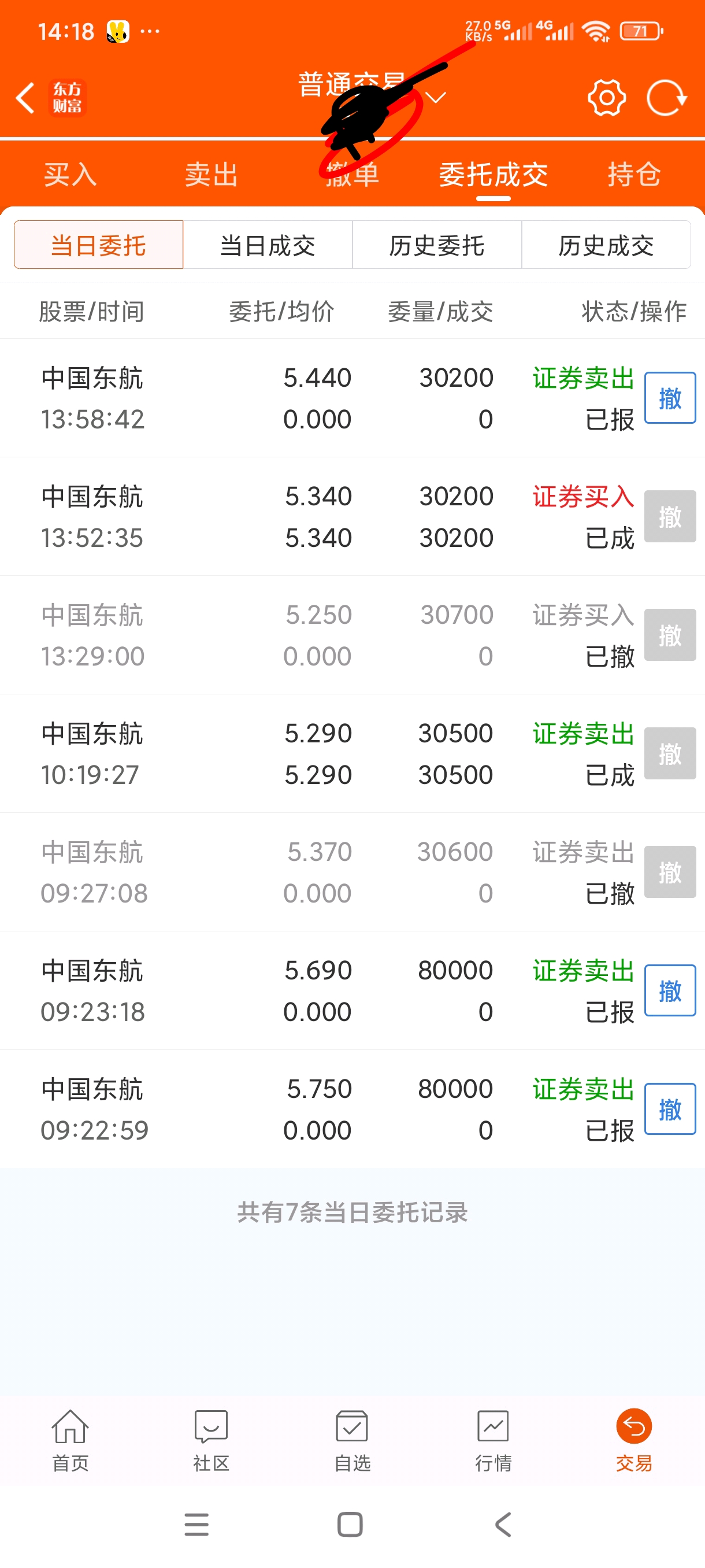 $中国东航(SH600115)$ 5块2毛9挂单忘撤了,竟然给我清掉掉了,没办法,5:34又接回来了
