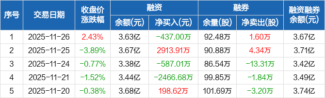 中国东航:融资净偿还437万元,融资余额3.63亿元(11-26)