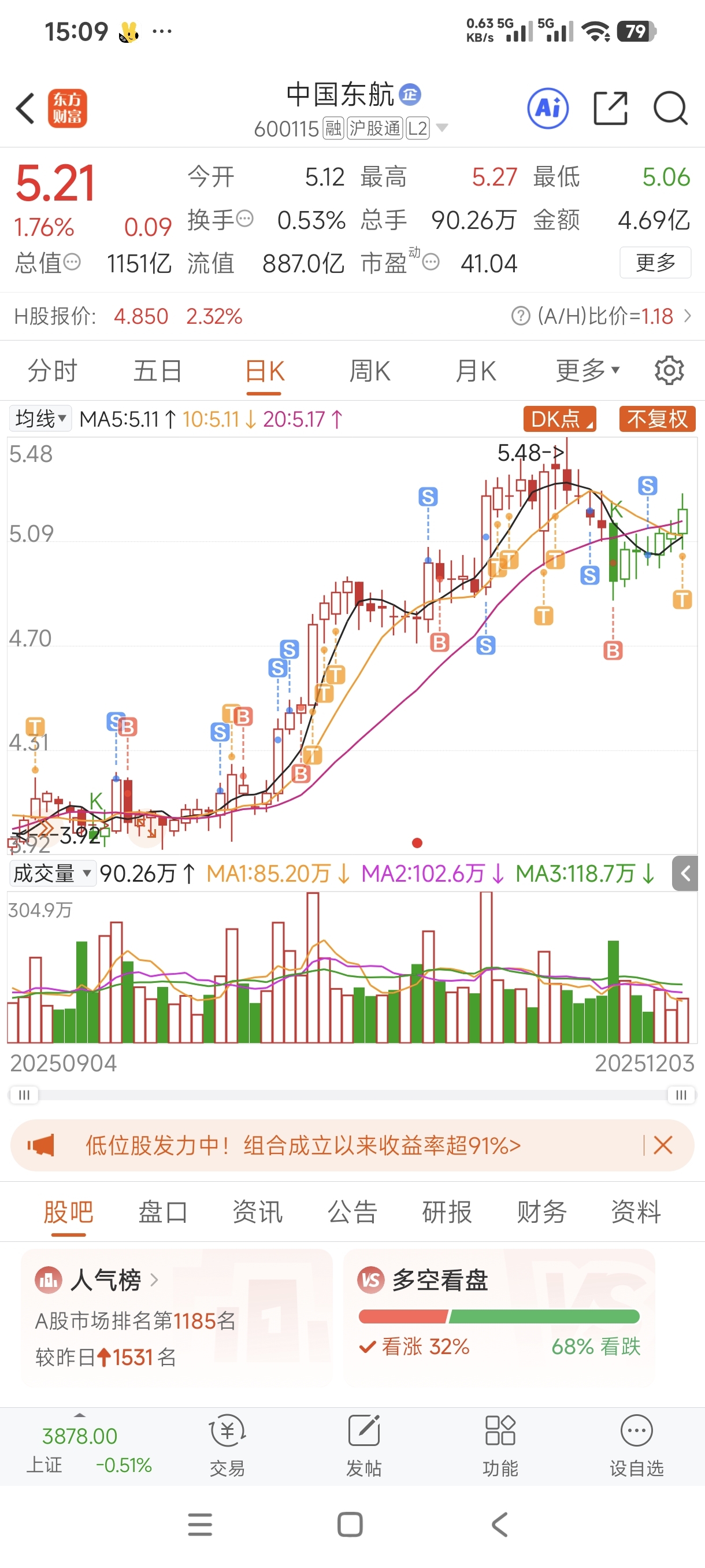 $中国东航(SH600115)$ 未涨停已经太久,最近随时可能会有