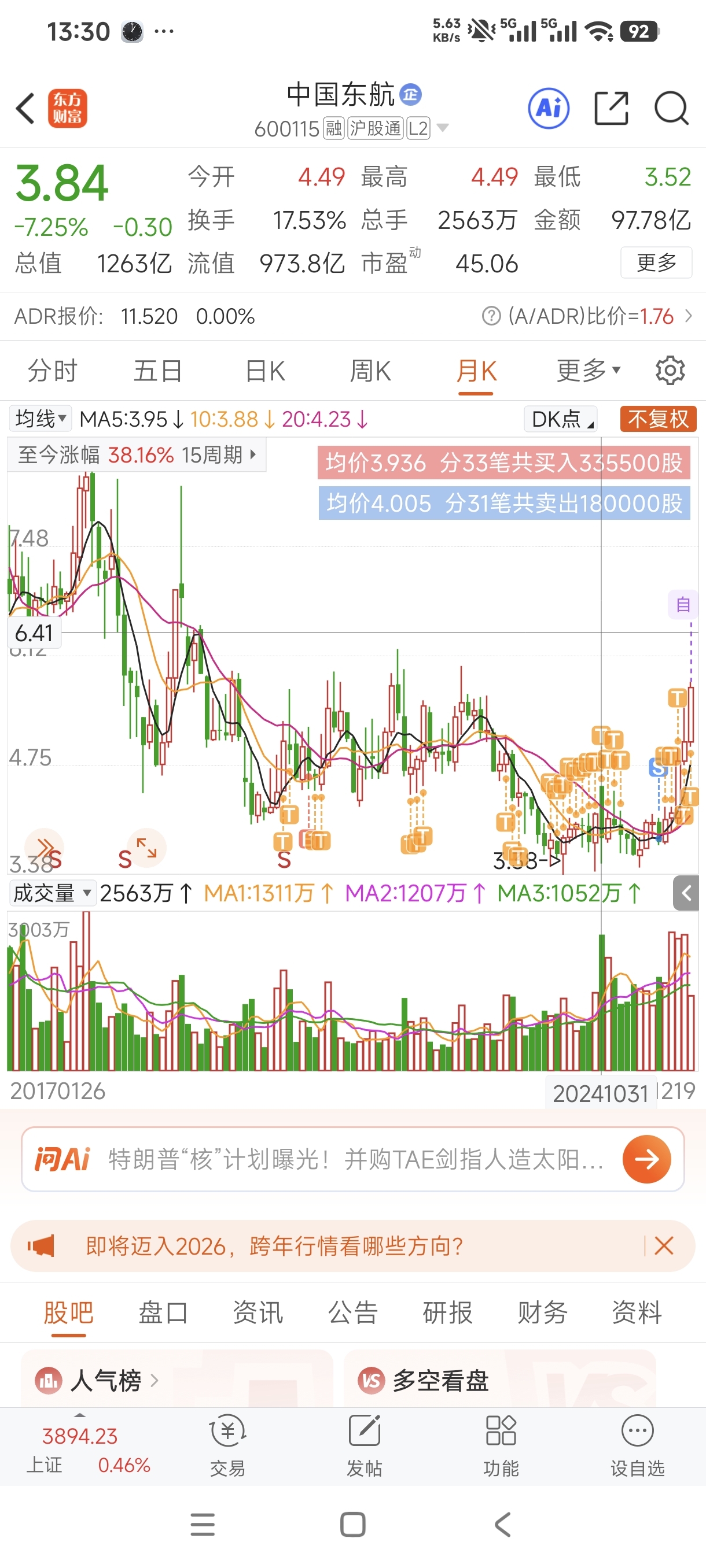 $中国东航(SH600115)$ 未来几个月,月线高点大约在6块4左右,中间可能会有波动,但不会太大