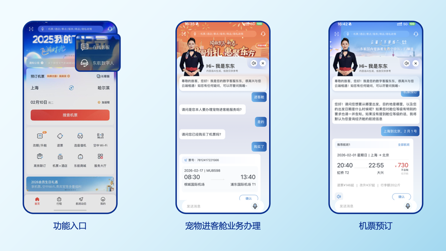 为迎接春运出行高峰,中国东方航空聚焦旅客多元化需求,对“东方航空APP”进行升级,以AI技术为核心驱动,以全场景服务为延伸,通过智能行程规划、数字人交互、实时行程关怀等智慧功能,以及线上线下联动的礼遇活动,为旅客打造一个更便捷、更舒心、更有温度的新春归途。