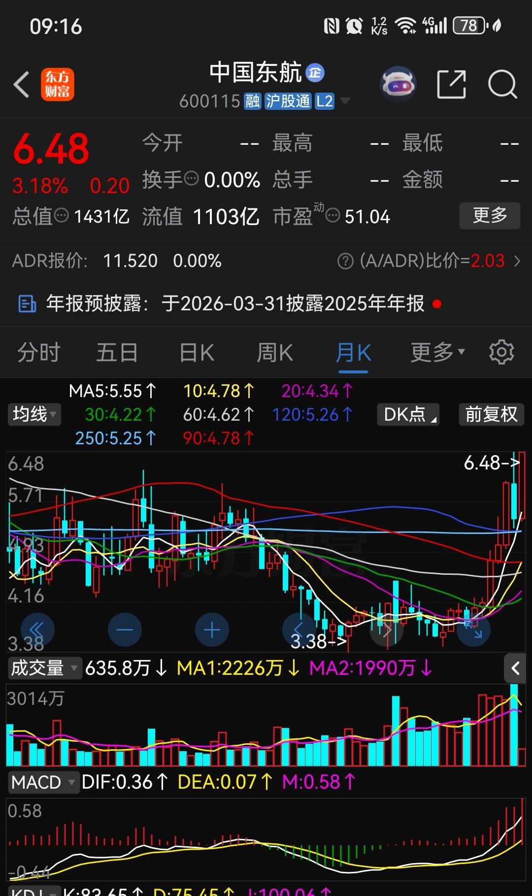 $中国东航(SH600115)$ 看月线,这是主升浪要来了啊