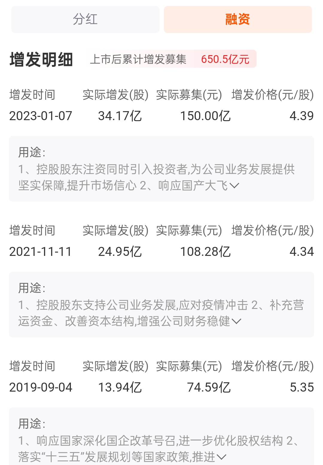 东航2023年,4.39定增了150亿,能直接出的有小20亿股(不用公告)