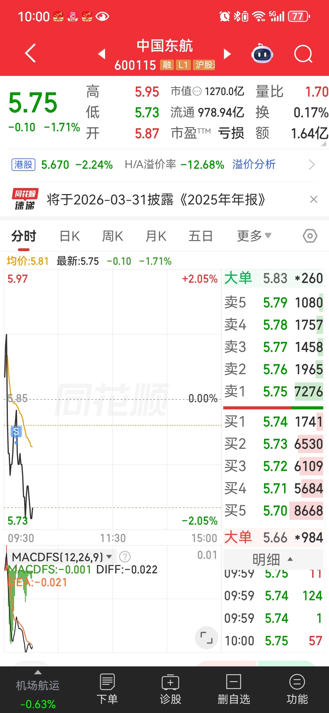 $中国东航(SH600115)$ 早不妙卖出,沪深创己到趋势压力位防拉高后下午砸盘…