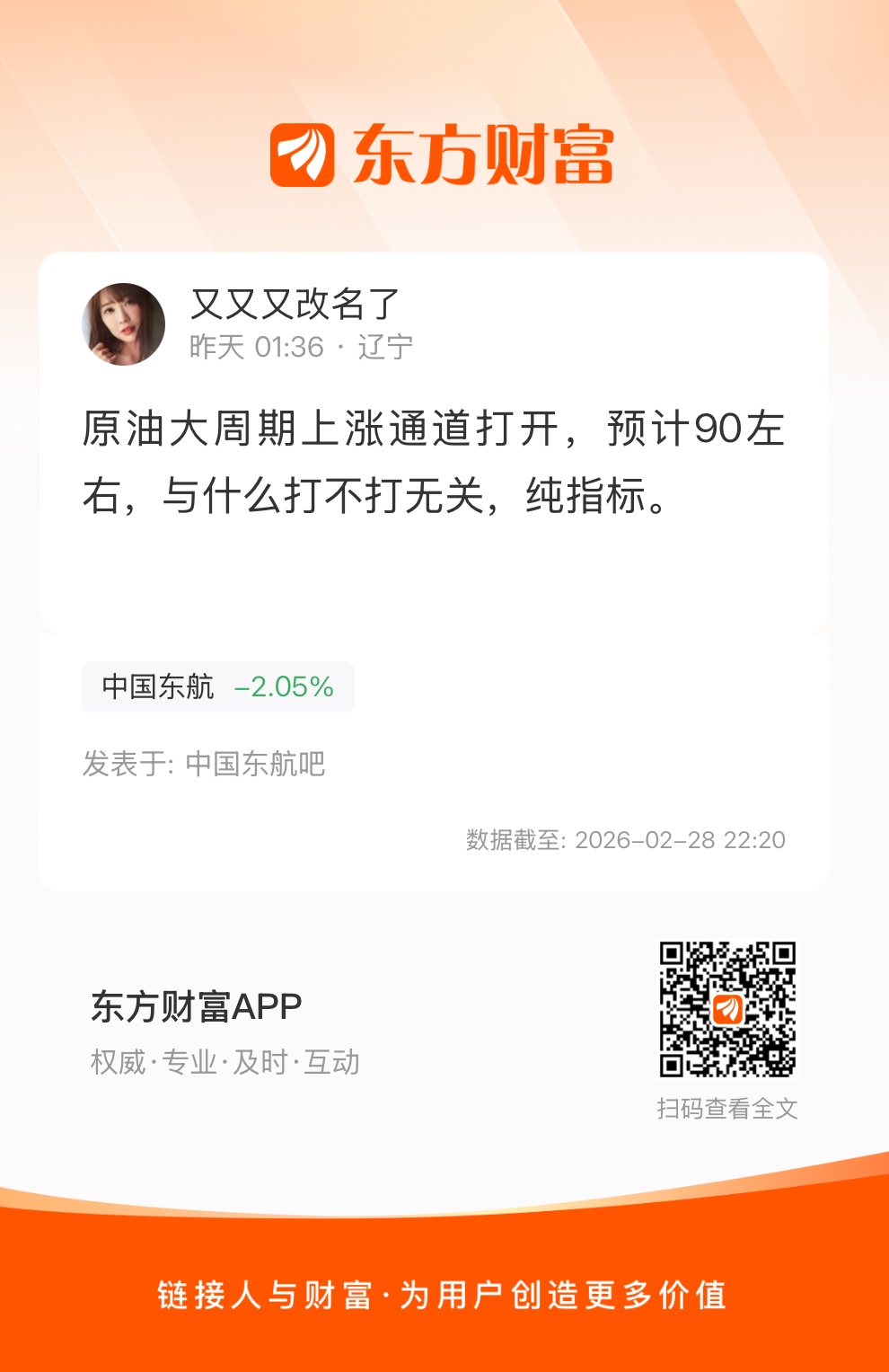 温馨提示: 1.根据《证券法》规定,禁止编造、传播虚假信息或者误导性信息,扰乱证券市场;2.用户在本社区发表的所有资料、言论等仅代表个人观点,与本网站立场无关,不对您构成任何投资建议。用户应基于自己的独立判断,自行决定证券投资并承担相应风险。《东方财富社区管理规定》