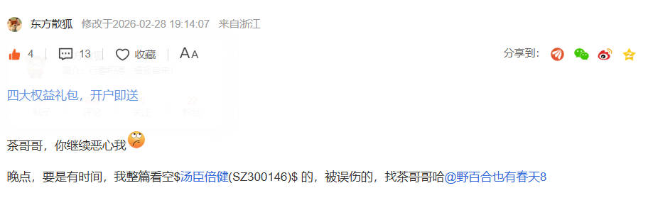 百合才是真精明、茶、坏,直接在汤臣倍健,搞了篇看空长文,影响他利益、破防了、怕我追着他打,然后就关了...不然你以为呢?