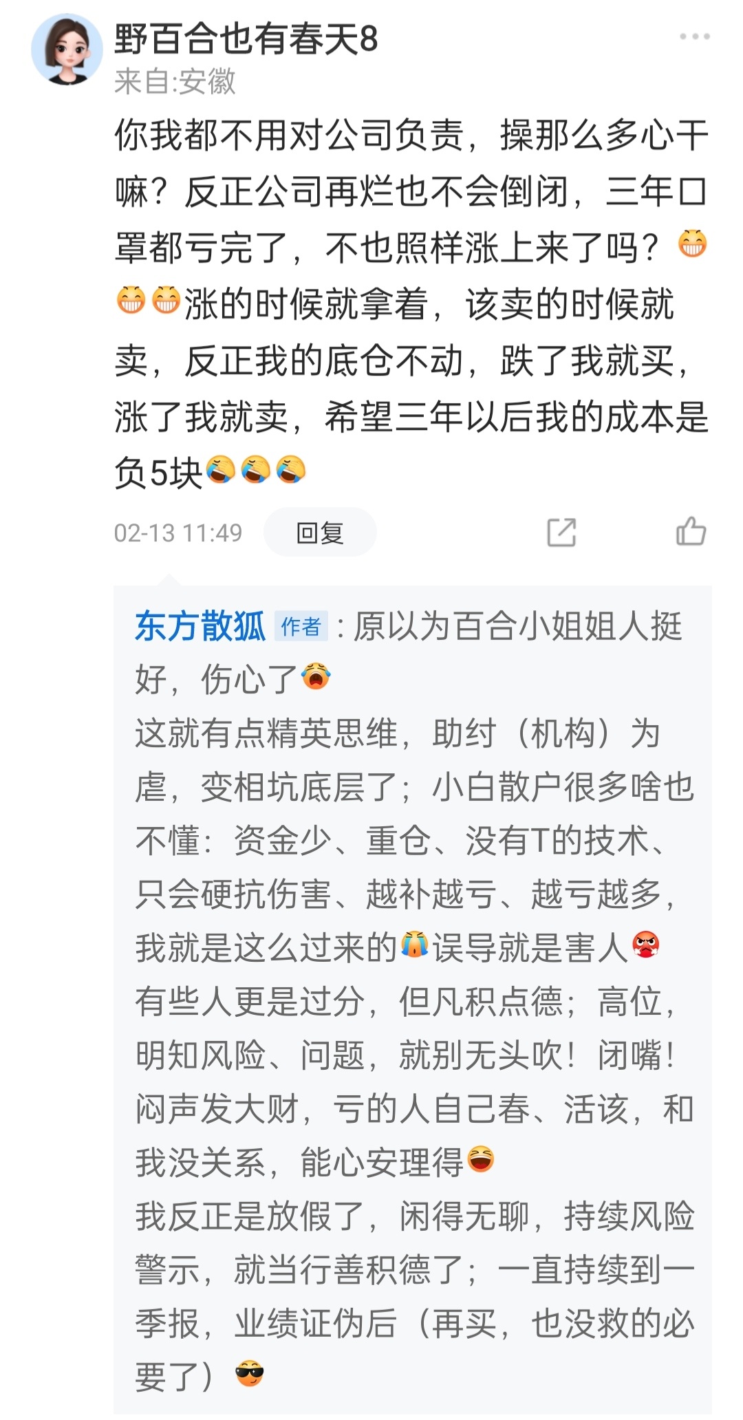 四、被扒后,恼羞成怒;但是,减仓不能影响,坚定看多的人设;开始阴阳、人身攻击,不止这俩图。。。