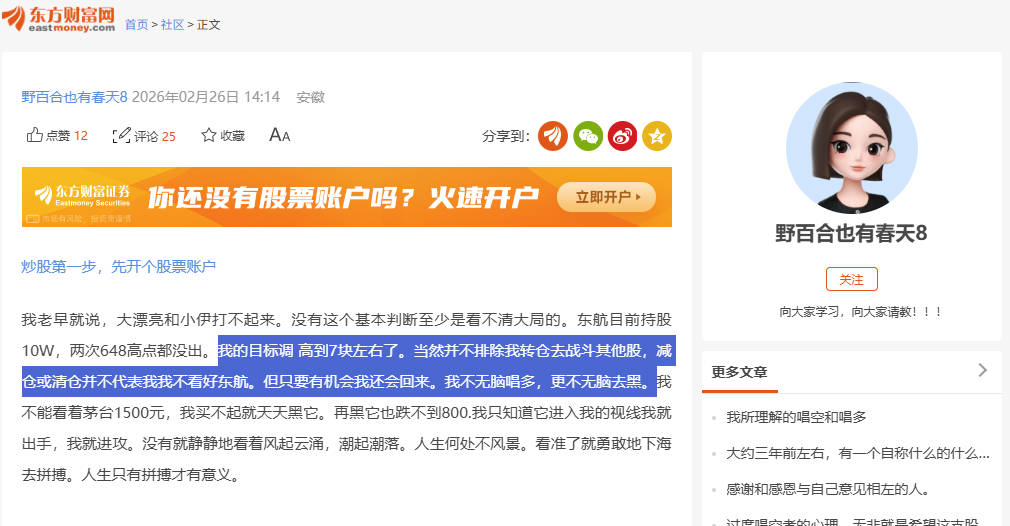 一、1月28,他自己晒的持仓;后续继续涨,东航盈利小/过百万吧?