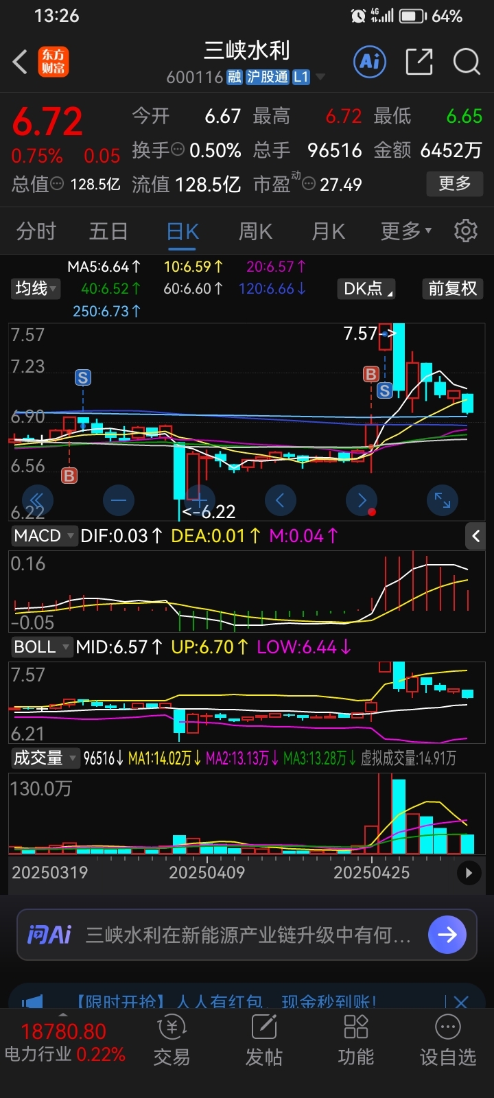 $三峡水利(SH600116)$ 兄弟们我又来了