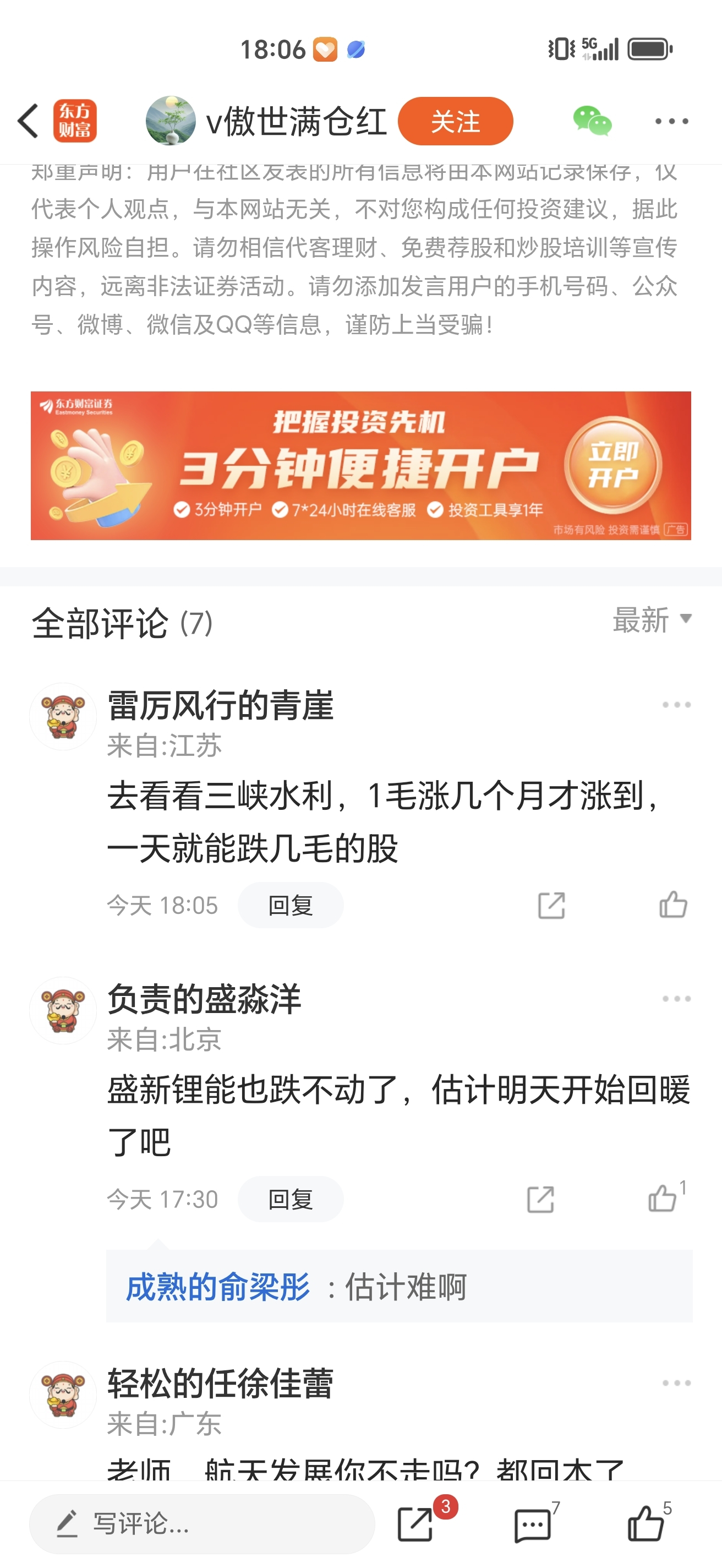 温馨提示: 1.根据《证券法》规定,禁止编造、传播虚假信息或者误导性信息,扰乱证券市场;2.用户在本社区发表的所有资料、言论等仅代表个人观点,与本网站立场无关,不对您构成任何投资建议。用户应基于自己的独立判断,自行决定证券投资并承担相应风险。《东方财富社区管理规定》