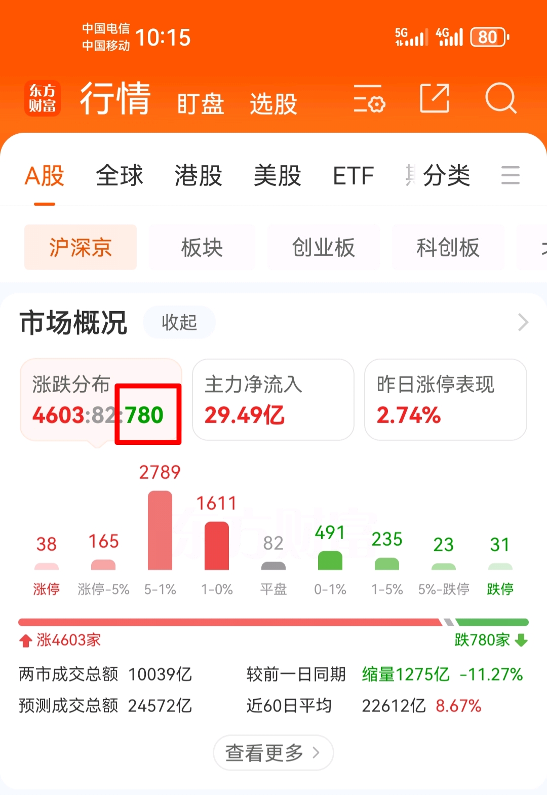 两市就七百多家绿的,你是其中一个。