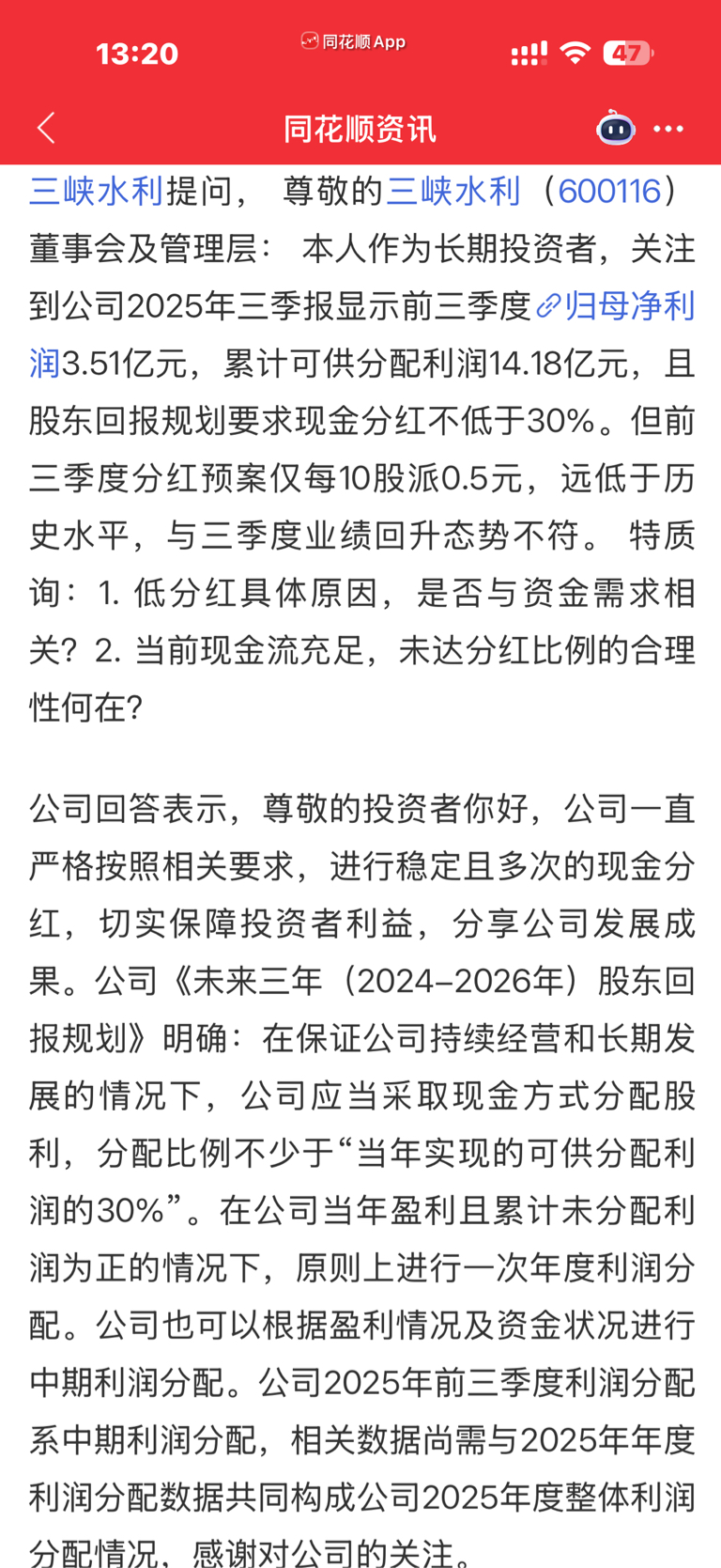 $三峡水利(SH600116)$ 原来是三季度的分红,25年还会有一次分红。