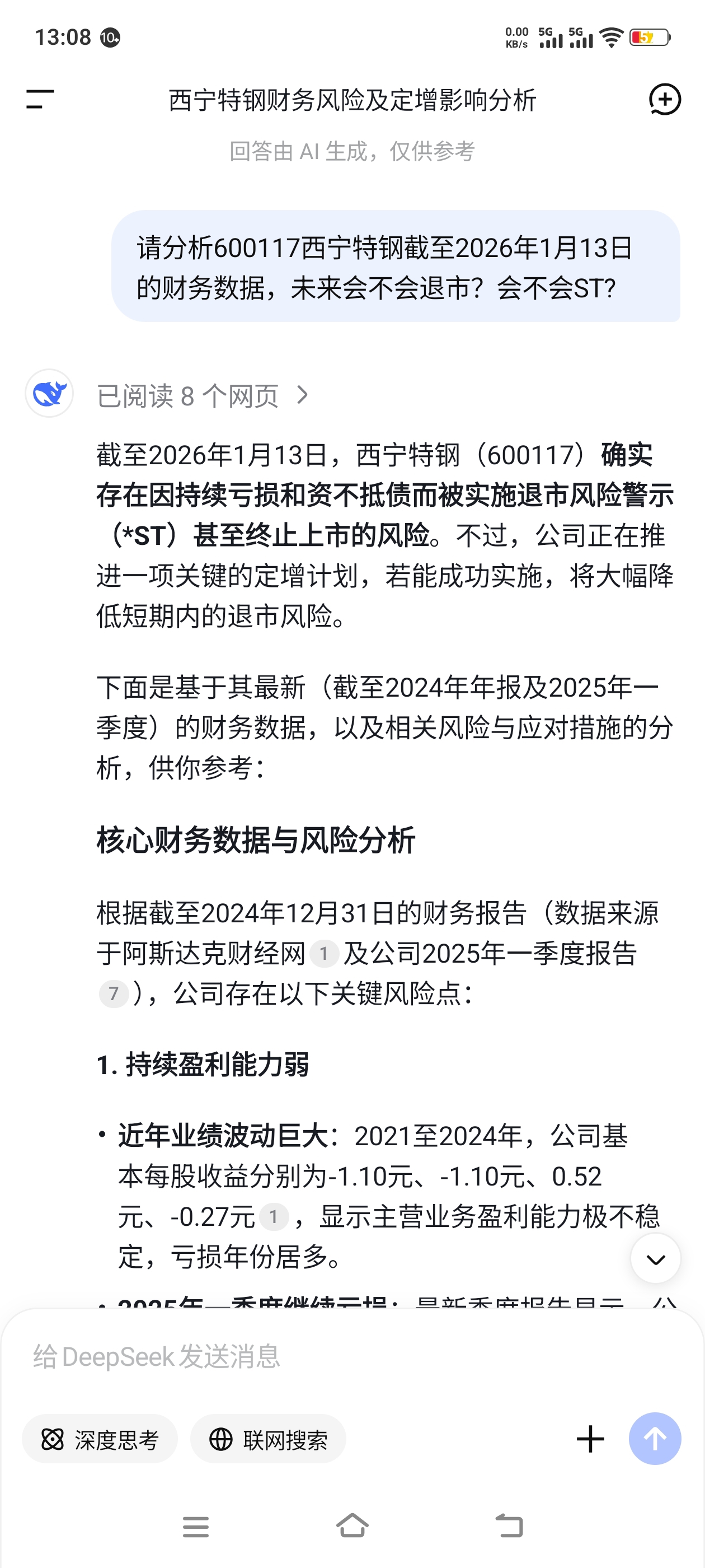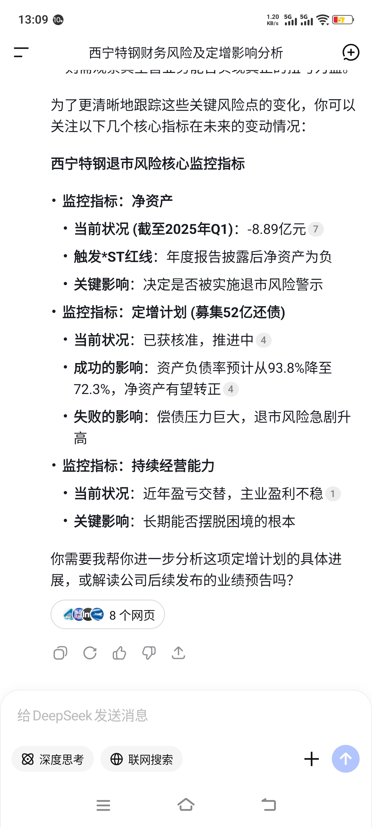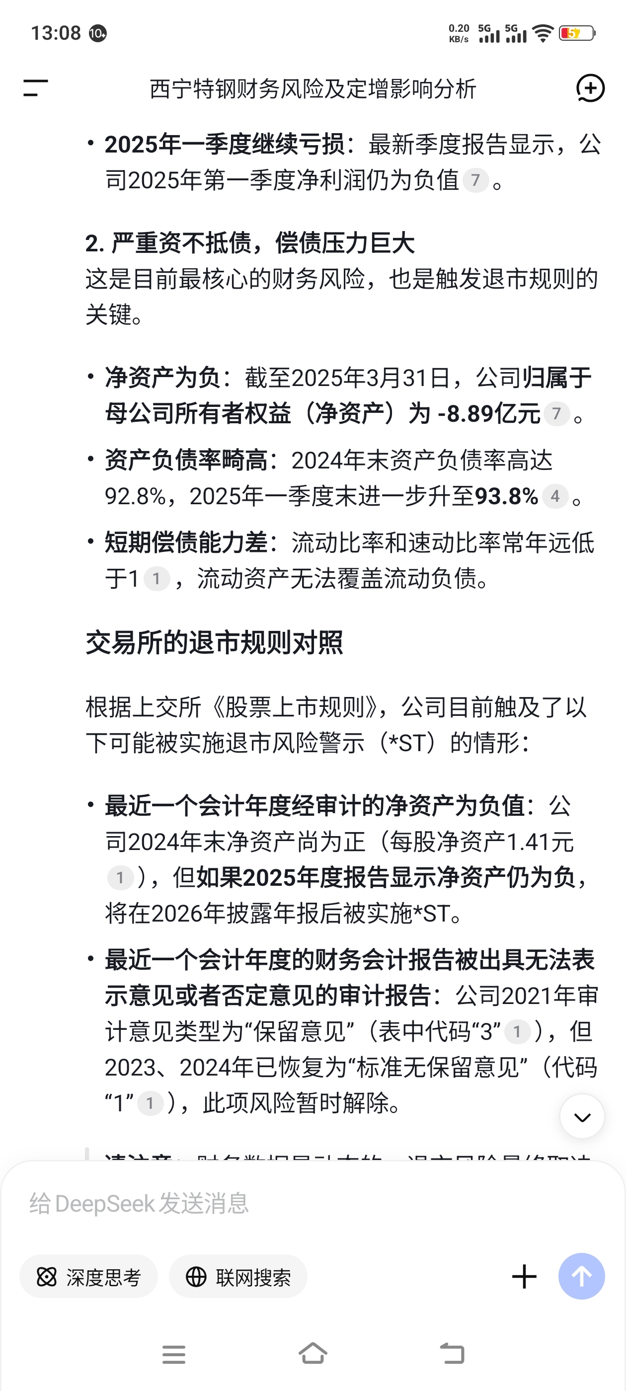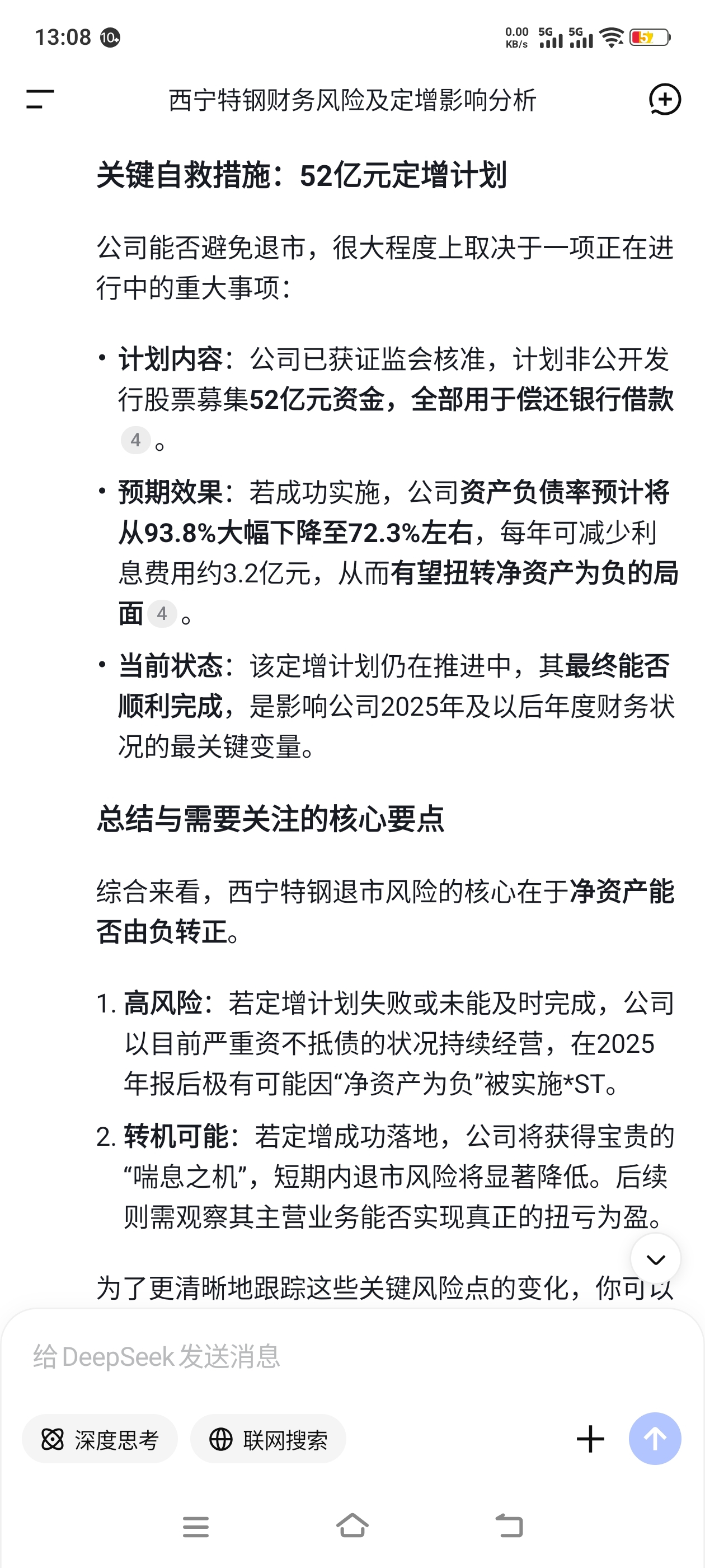 $西宁特钢(SH600117)$ 定增失败的话,这股玩完,*ST退市!!!!