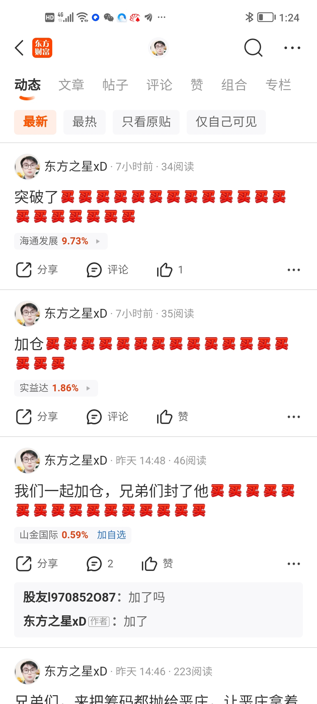 温馨提示: 1.根据《证券法》规定,禁止编造、传播虚假信息或者误导性信息,扰乱证券市场;2.用户在本社区发表的所有资料、言论等仅代表个人观点,与本网站立场无关,不对您构成任何投资建议。用户应基于自己的独立判断,自行决定证券投资并承担相应风险。《东方财富社区管理规定》