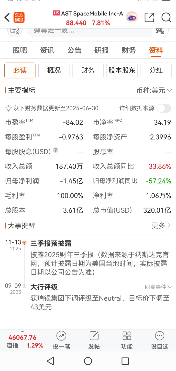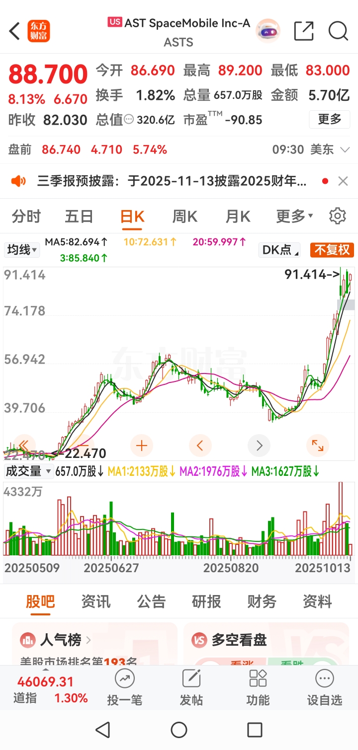 $中国卫星(SH600118)$ AST SpaceMobile, Inc.美股卫星通信股