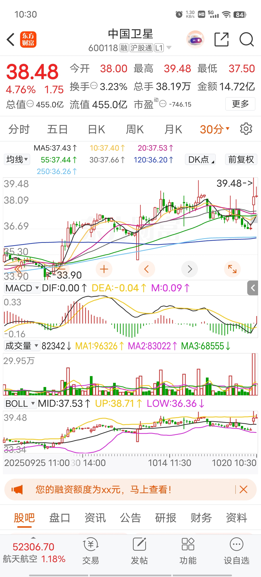 $中国卫星(SH600118)$ 30分两个上影线,今天又没戏了,中线看好,就是反复做踢的票