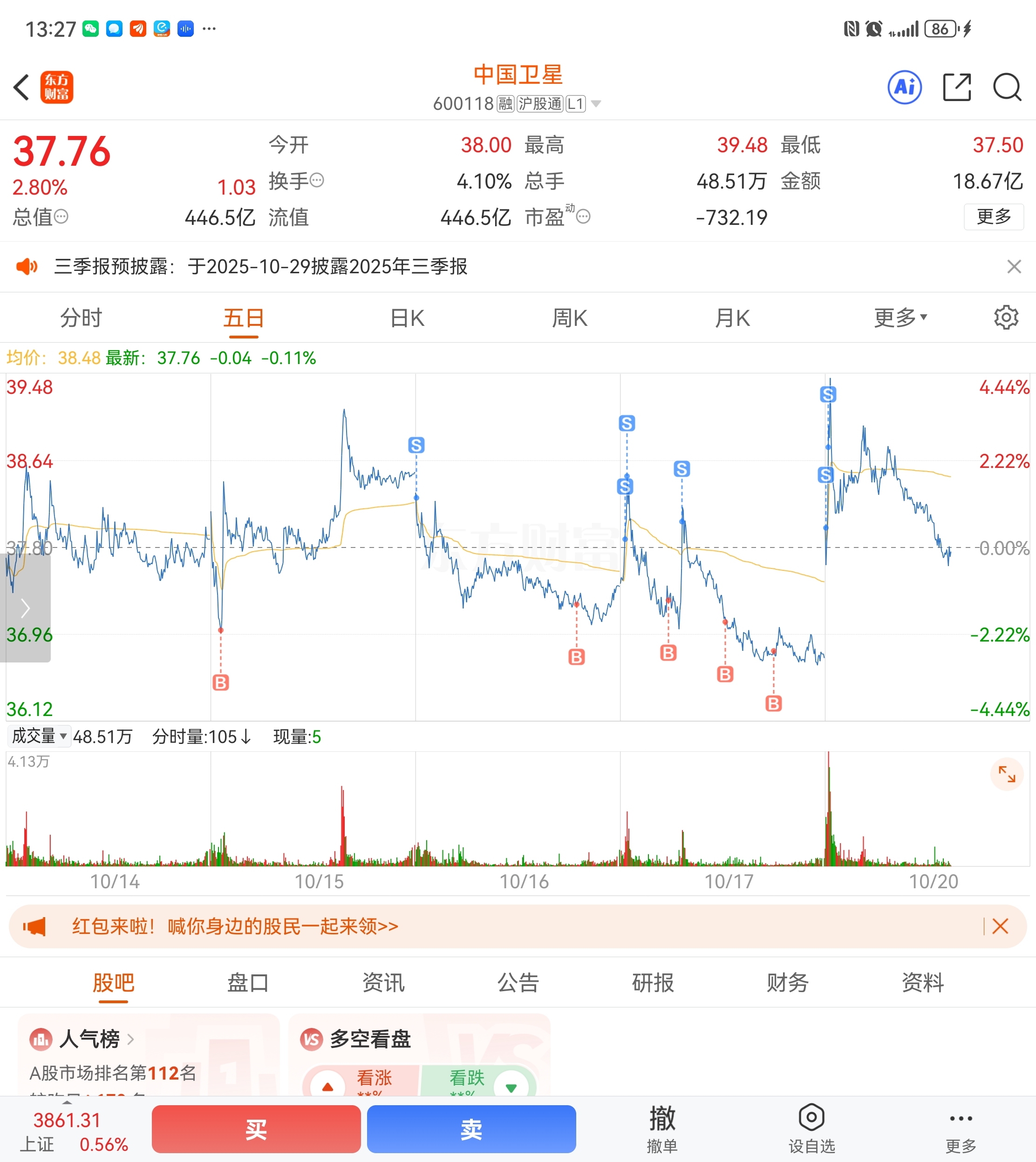 $中国卫星(SH600118)$ 我就是那个T,要不要接回去