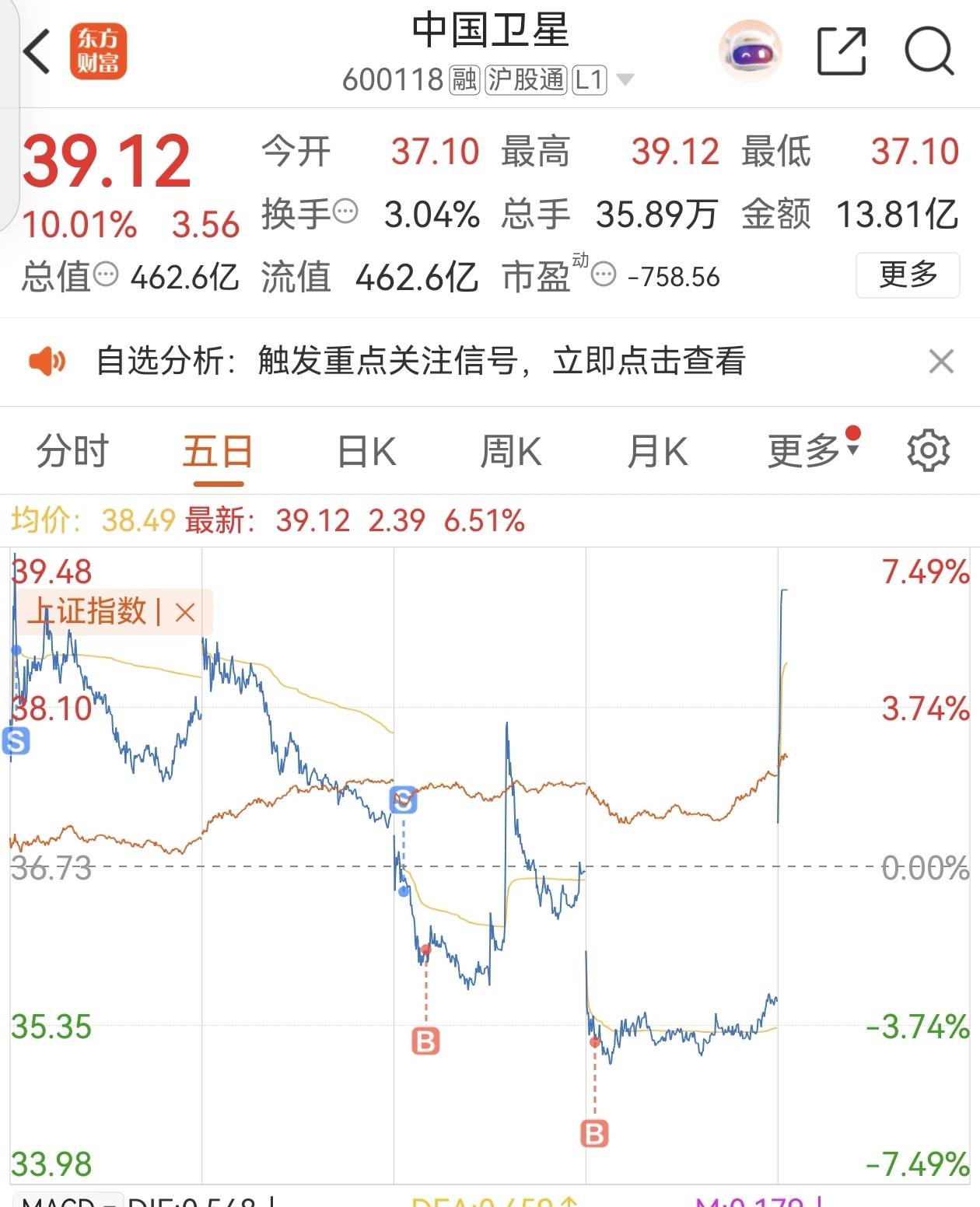 $中国卫星(SH600118)$ 开饭了