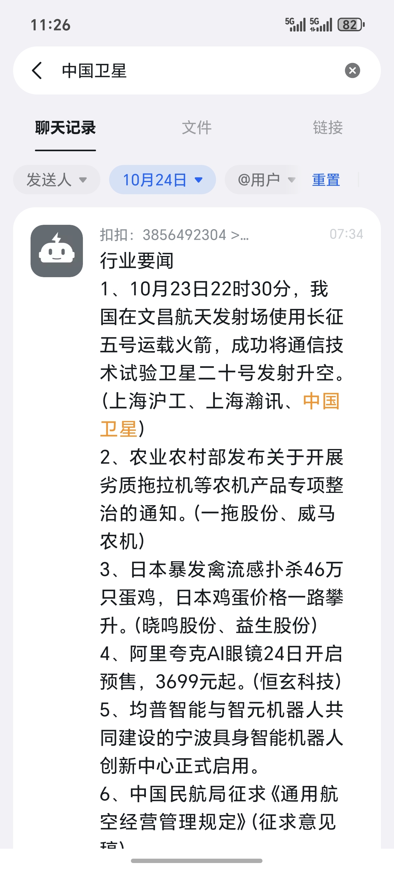 $中国卫星(SH600118)$ 早上整理的行业信息,发酵了