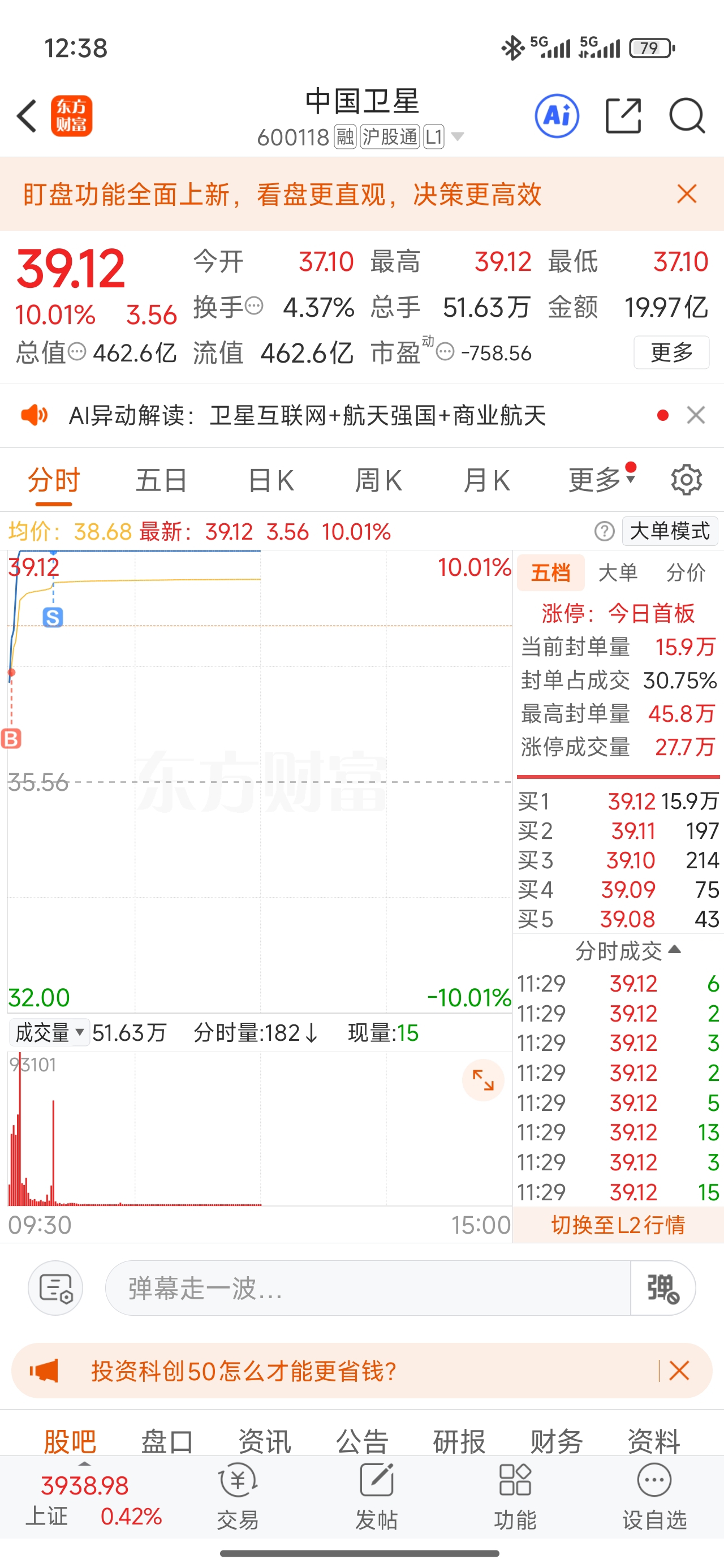 $中国卫星(SH600118)$ 拿了两个月,才回本。开板跑咯,卖飞了