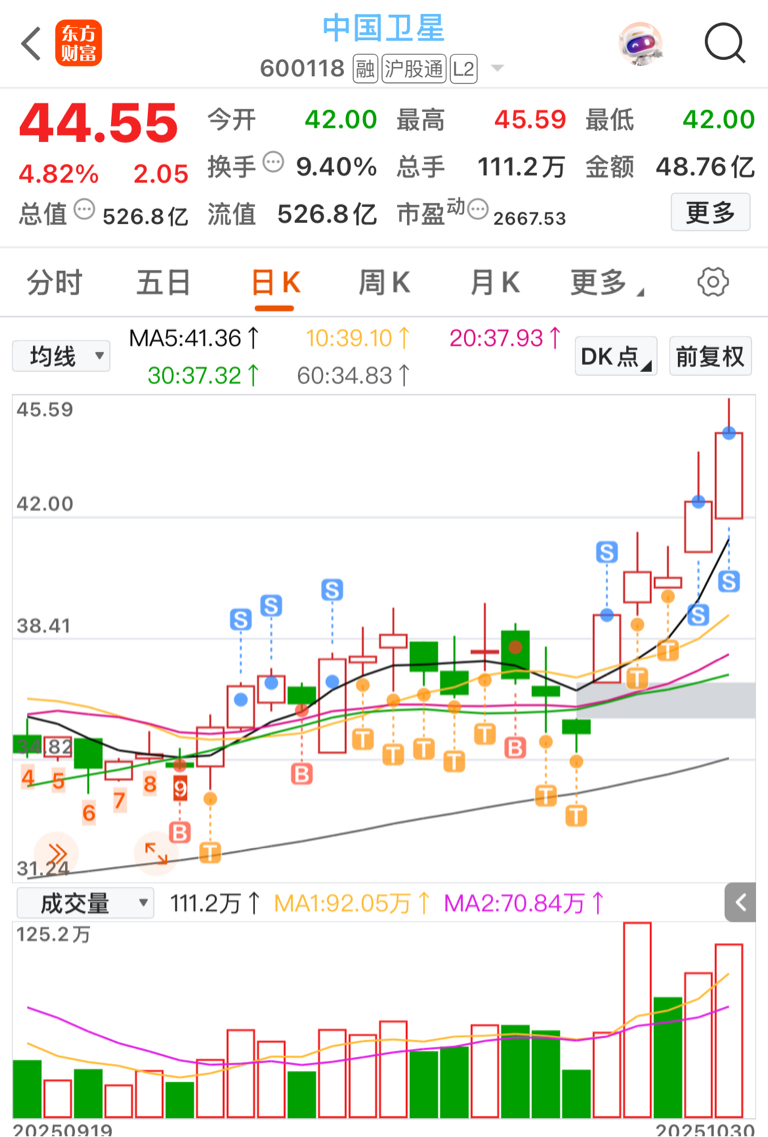 $中国卫星(SH600118)$  哎,大盘跳水,卫星清仓了,后面找低点再接回来