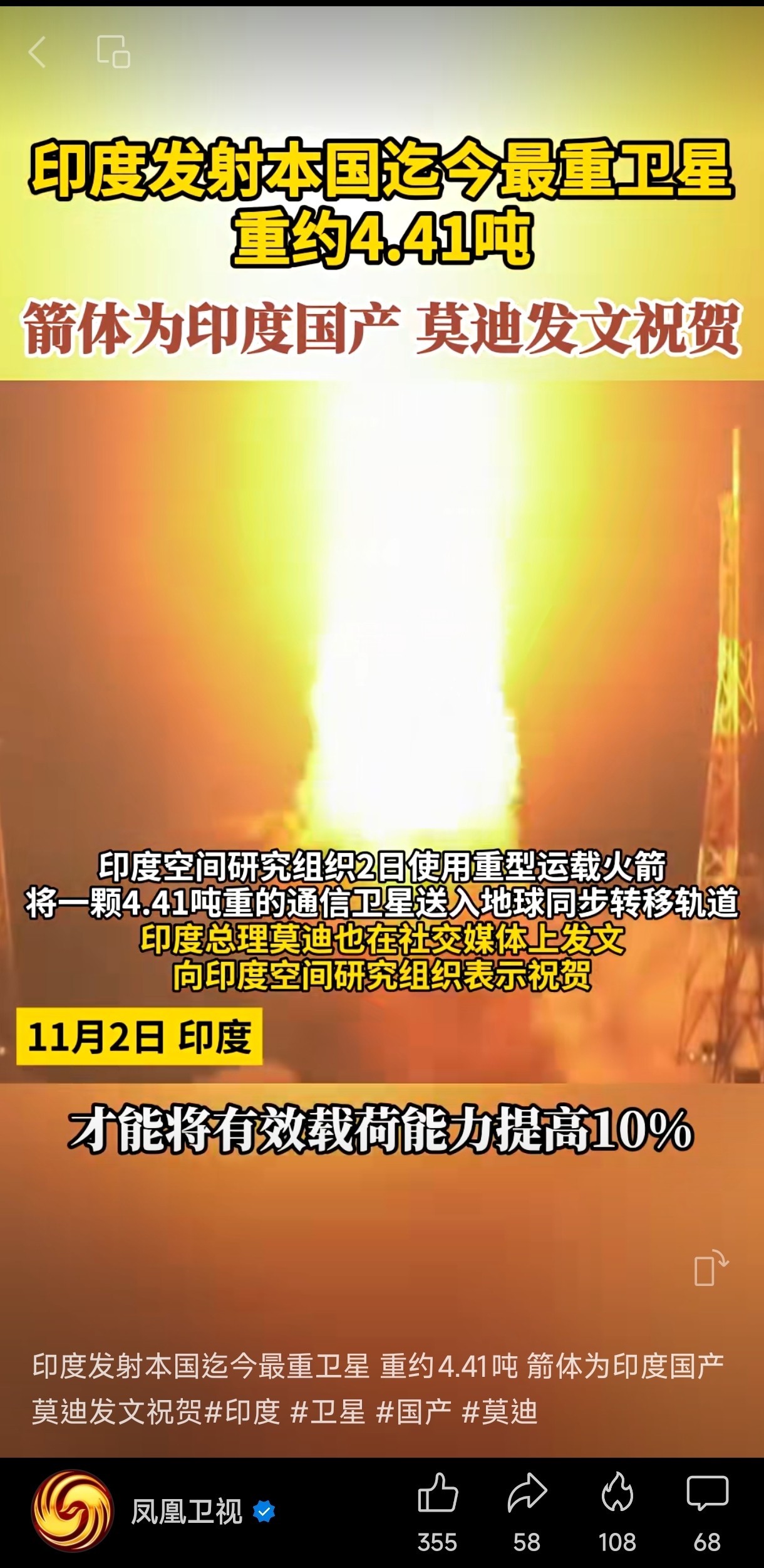 $中国卫星(SH600118)$ 印度也在布局卫星,可见卫星的重要性!继续坚定看好!