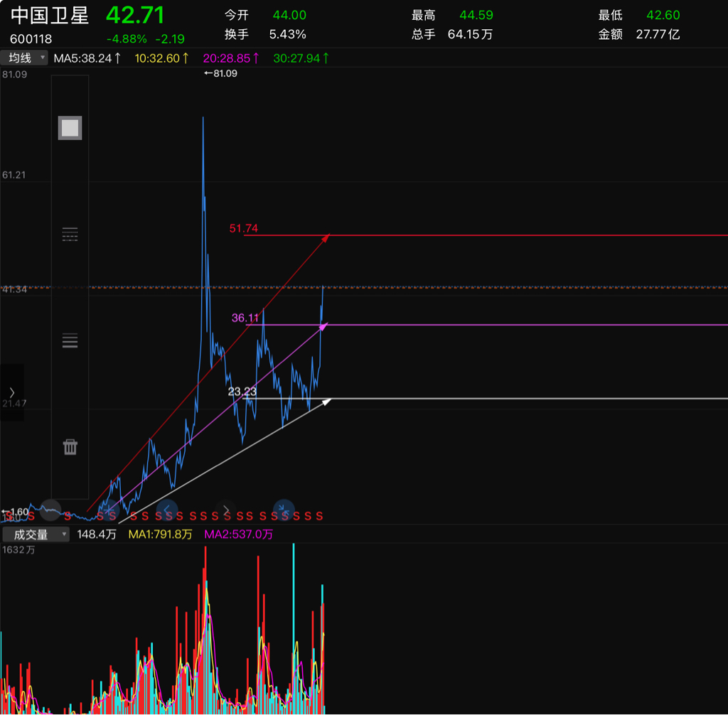 51等待突破(+20%)36看支撑(-15%)23以下可以卸软件放着养老个人观点