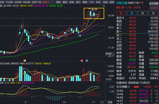 10月27日突破收敛三角形后继续上涨,近几日横盘震荡,下周看能否突破震荡区,如果可以,就继续看多、持股。如果继续横盘,就需要耐心等待方向选择。如果向下跌破41.88、39.34的位置,将形成假突破,可以根据保护线位置分批减仓,控制风险。