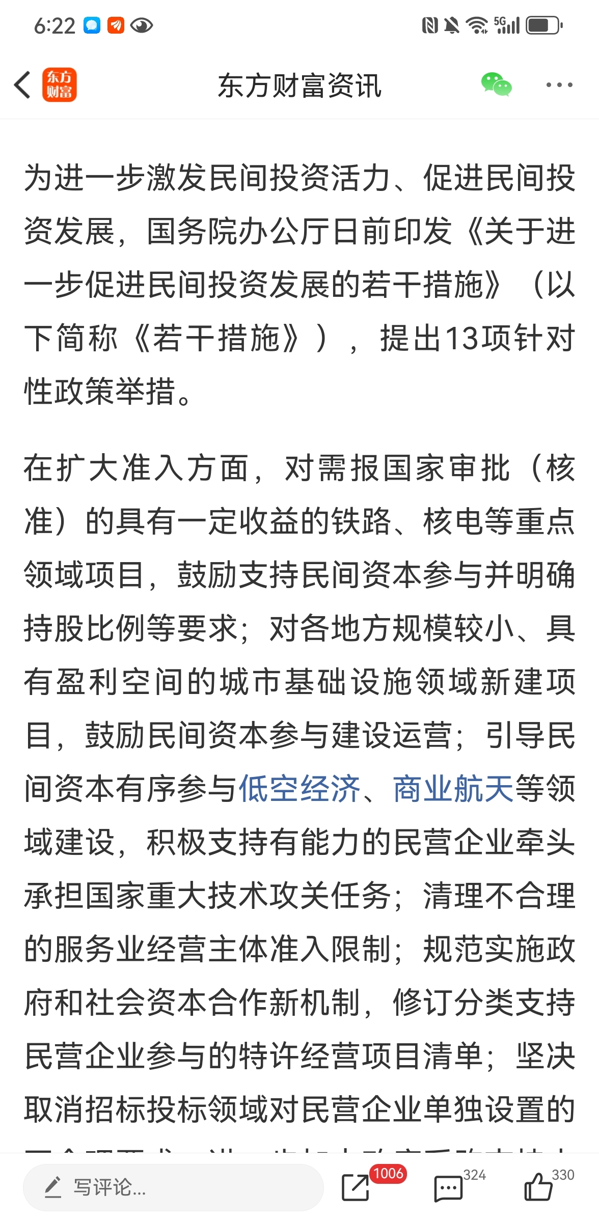 $中国卫星(SH600118)$ 国务院办公厅印发《关于进一步促进民间投资发展的若干措施》引导民企参与商业航天