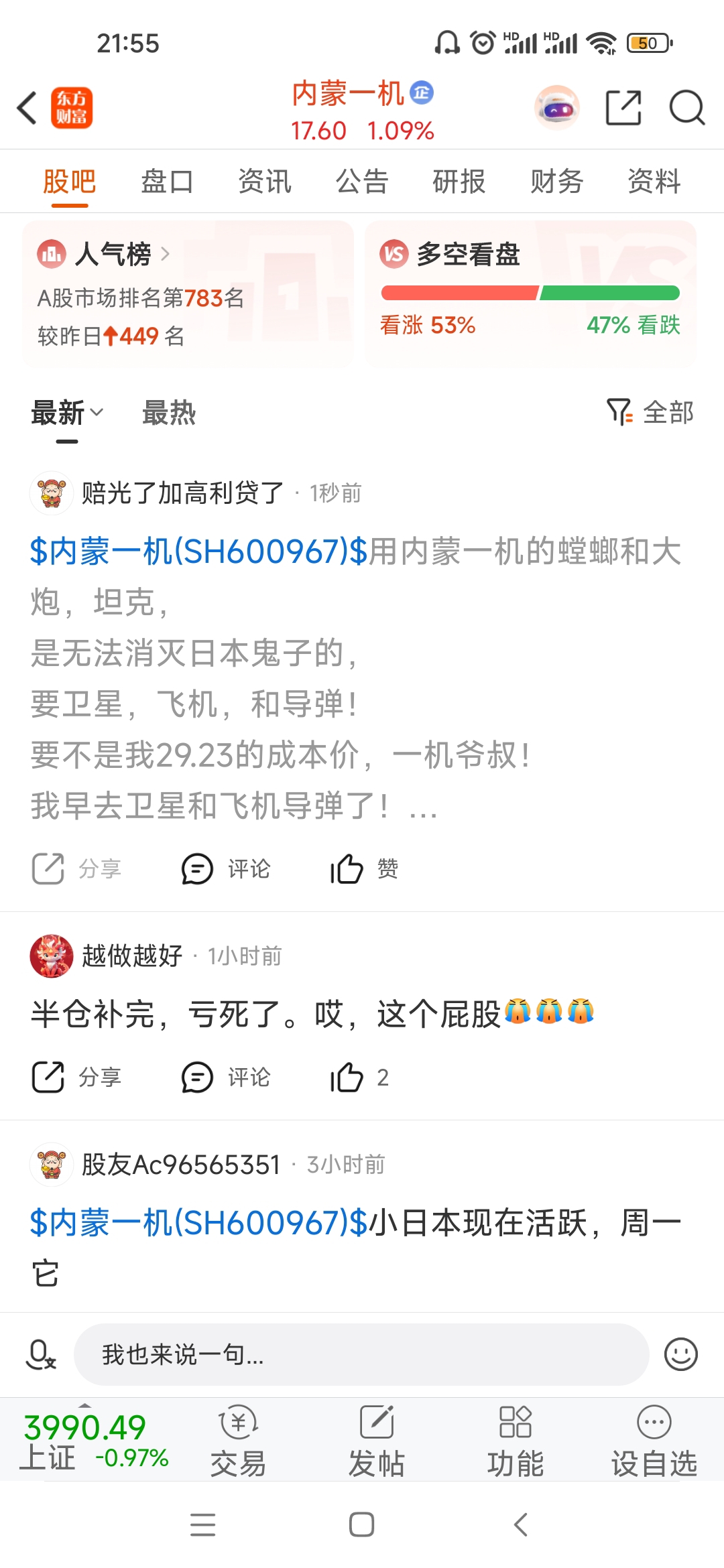 温馨提示: 1.根据《证券法》规定,禁止编造、传播虚假信息或者误导性信息,扰乱证券市场;2.用户在本社区发表的所有资料、言论等仅代表个人观点,与本网站立场无关,不对您构成任何投资建议。用户应基于自己的独立判断,自行决定证券投资并承担相应风险。《东方财富社区管理规定》