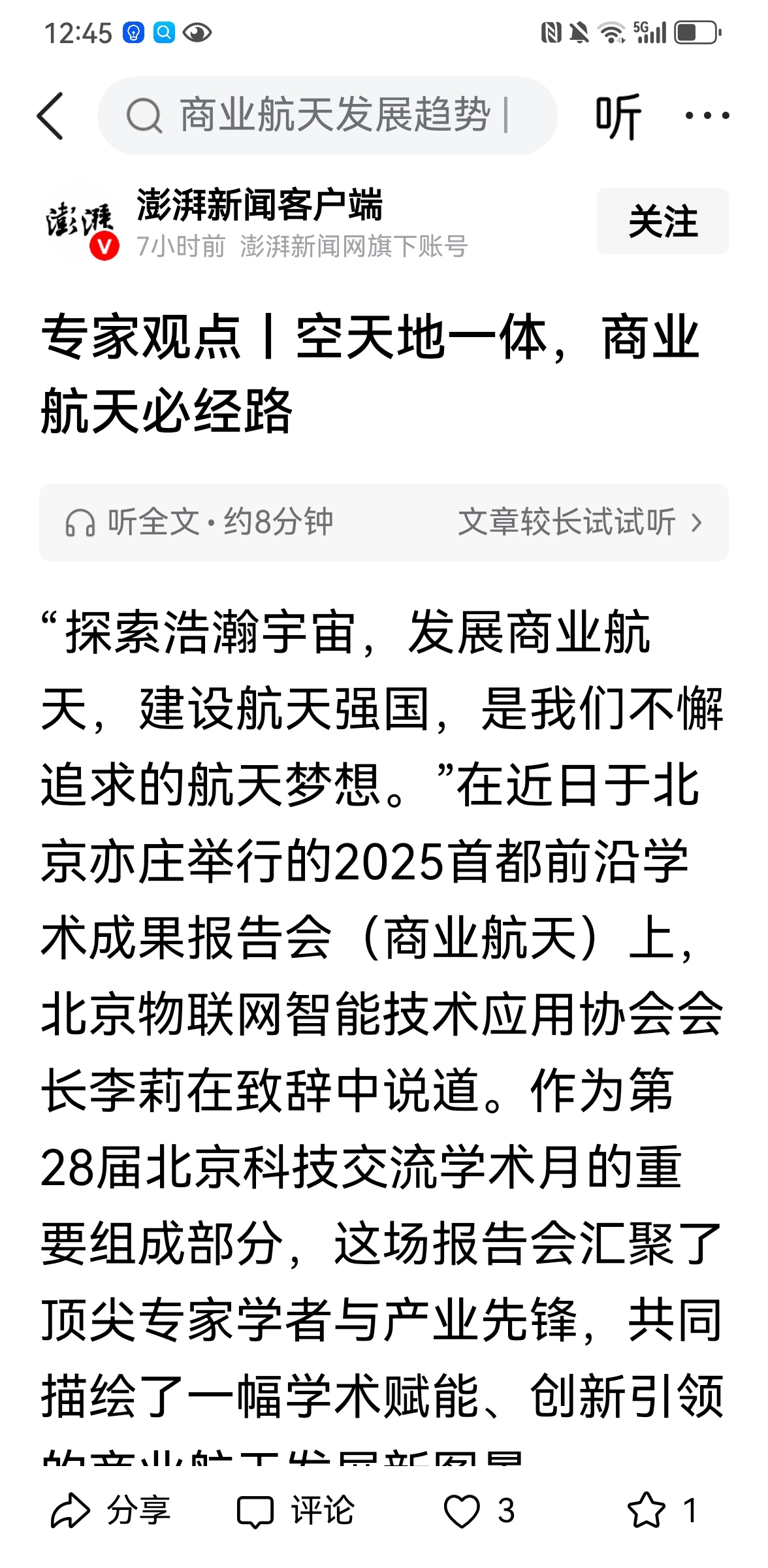 $中国卫星(SH600118)$ 空天地一体,商业航天必经路