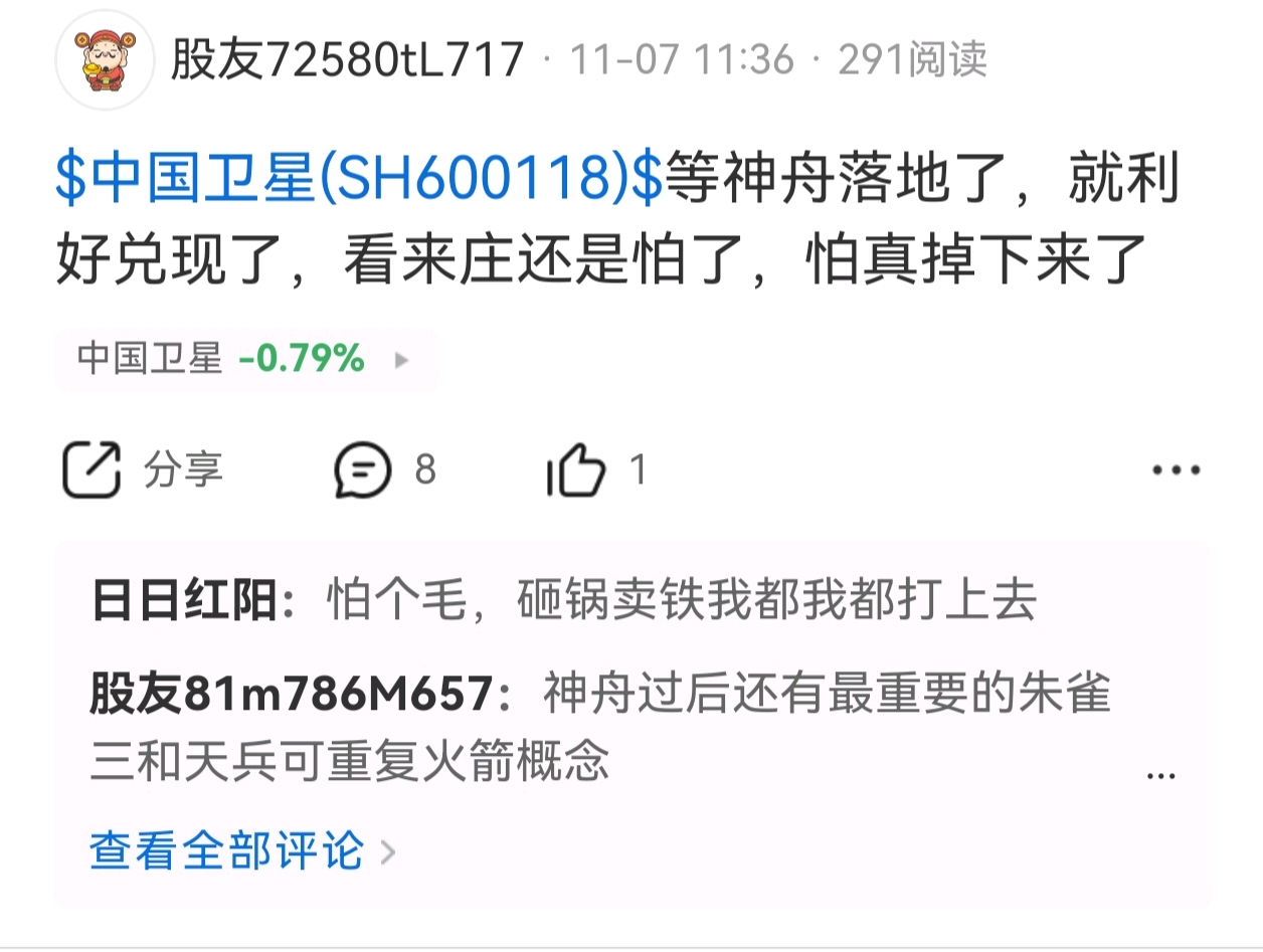 $中国卫星(SH600118)$ 我说的不知道对不对,到时验证一下